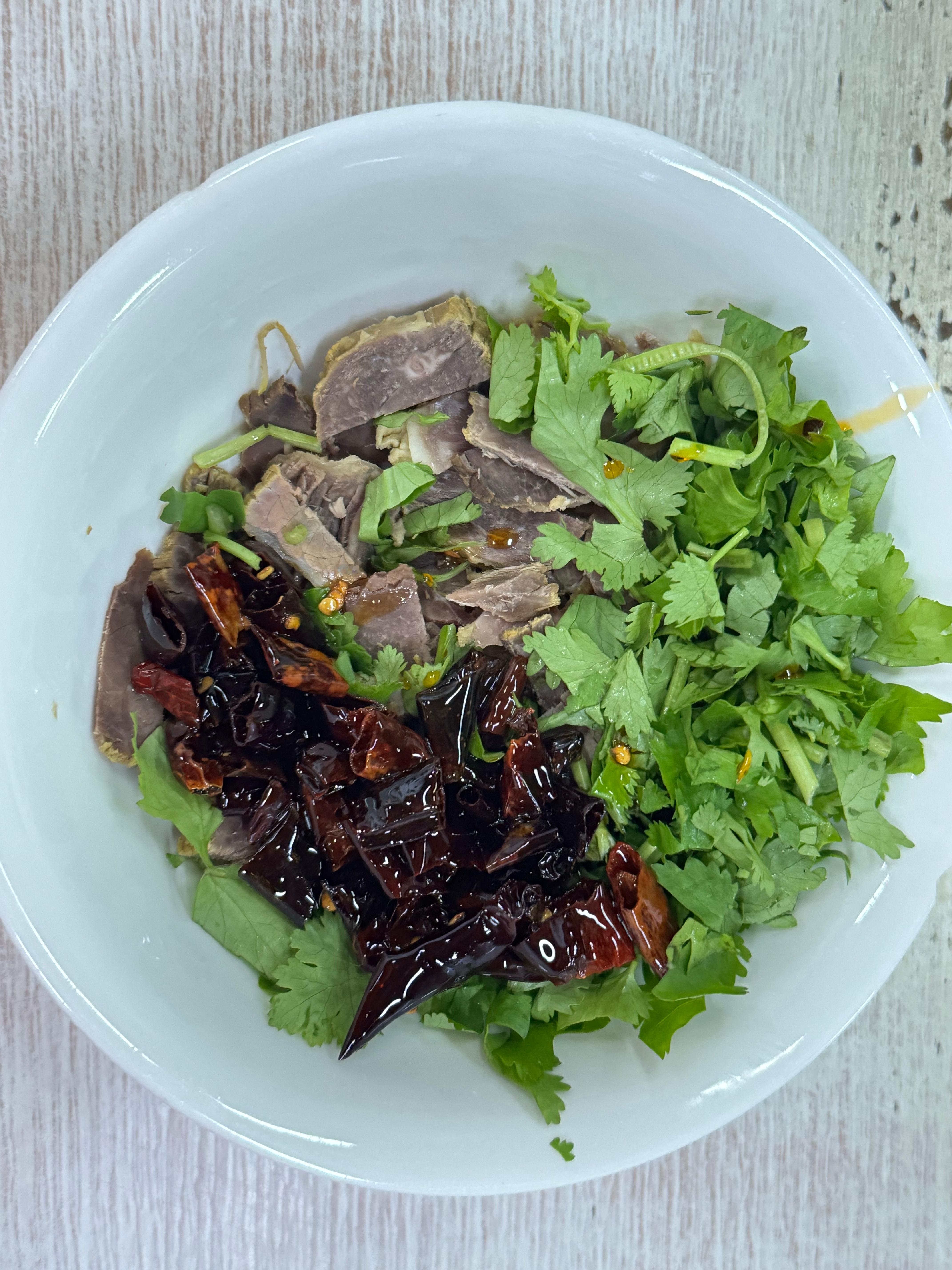 打卡一家“北京最好吃的拉面店”,面条筋道爽滑,再点一份牛肉加上香菜和炸的辣椒油,拌在一起好吃极了!