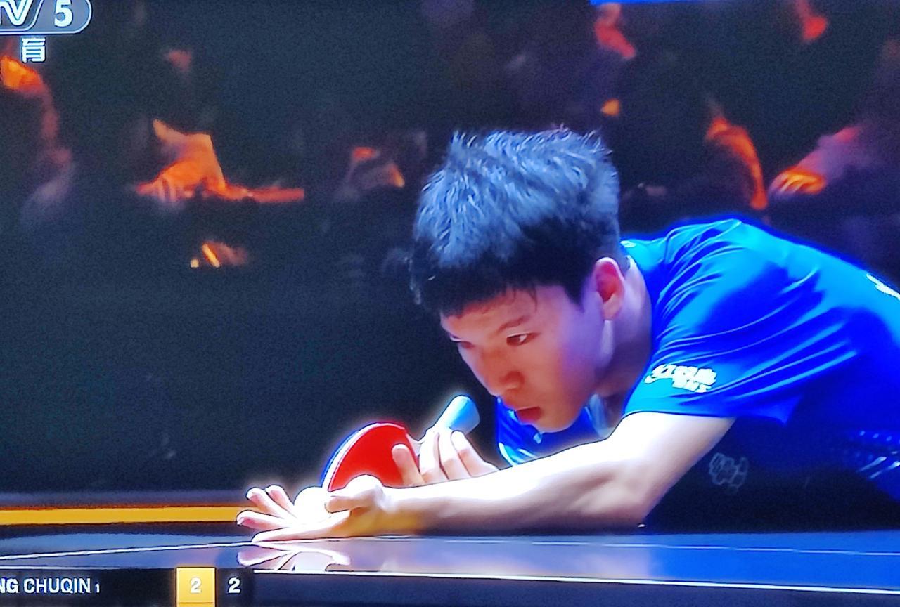 王楚钦在1.3落后情况下,完成超级大逆转,连扳三局,最后4.3战胜队友向鹏,晋级