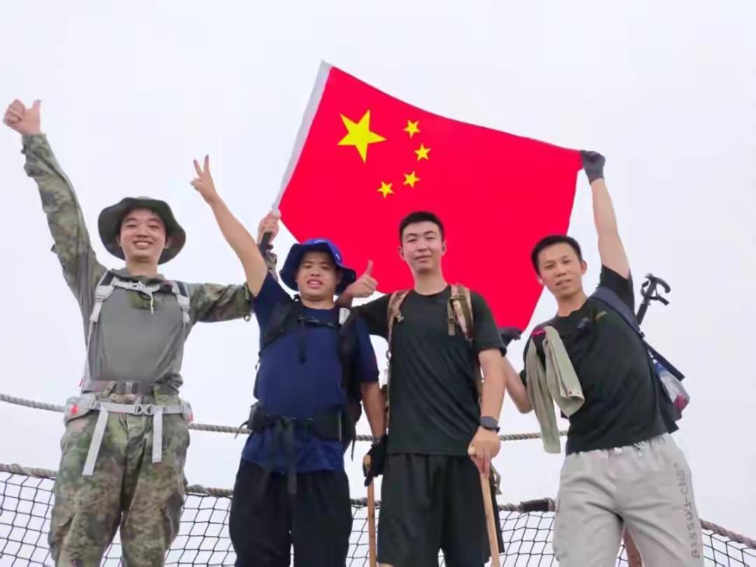 9月29日中午,蓝天救援队正在休假的邬铮凯与三位刚退役的同学在黄山天都峰游览时正