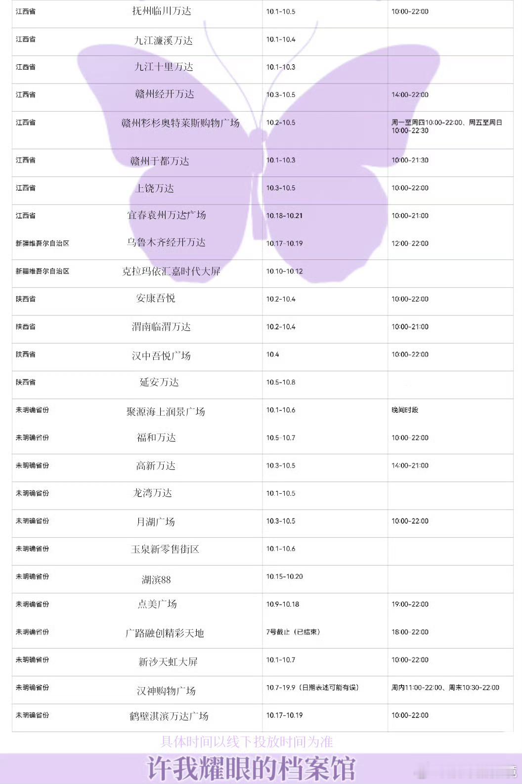许我耀眼全国线下应援大屏,具体亮屏时间如下,大家可以前往自己的城市进行打卡[太开心][太开心]支持赵露思