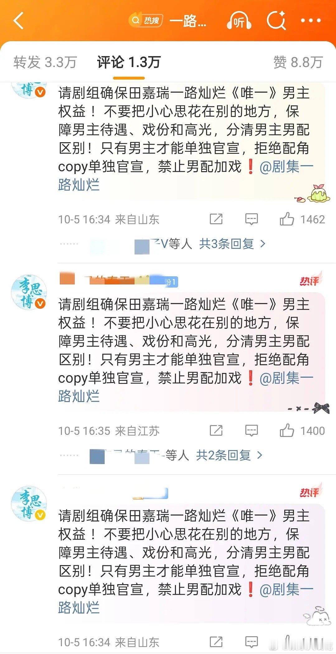 田嘉瑞粉丝疑似因为不公正待遇在一路灿烂官博底下维权....这是咋回事[哆啦A梦害怕]