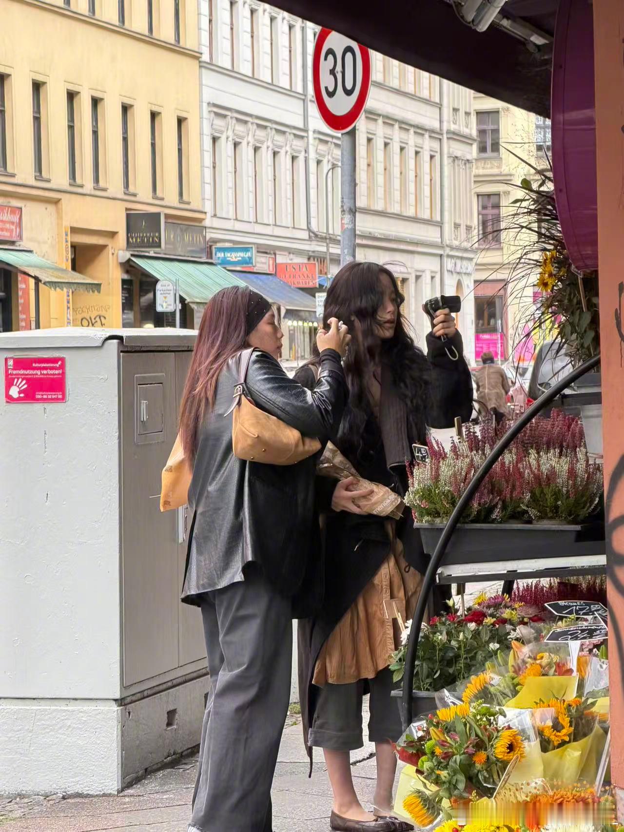 柏林偶遇欧阳娜娜 巴黎时装周后被偶遇柏林拍vlog,一手拿花一手拿相机画面好美~