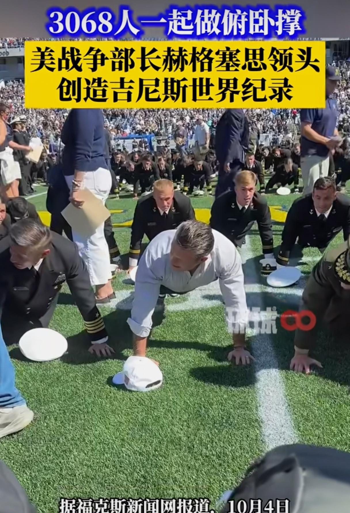 美战争部长赫格塞思领头创造一项俯卧撑吉尼斯世界纪录!据福克斯新闻报道10月4日,