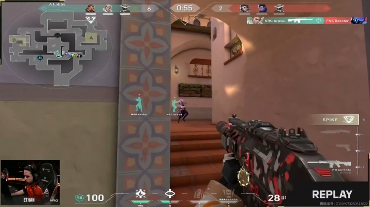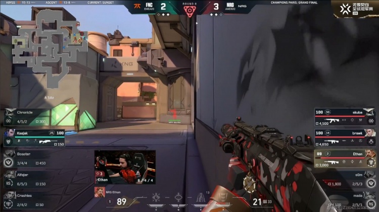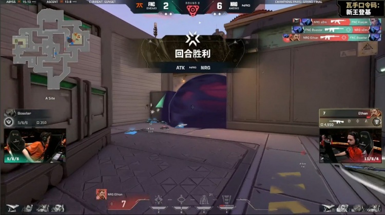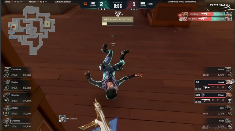 第3局来到长枪,NRG冲进B点双方3换3,残局2v2,Ethan击杀Alfajer拿到三杀,brawk带走Crashies,FNC2-1NRG。