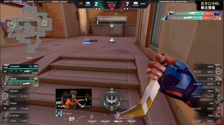 第10局FNC暂停回来,Kaajak大狙先轰掉Ethan,NRG进B下包,mada联手s0m双杀,Kaajak狂轰三杀,FNC3-7NRG。