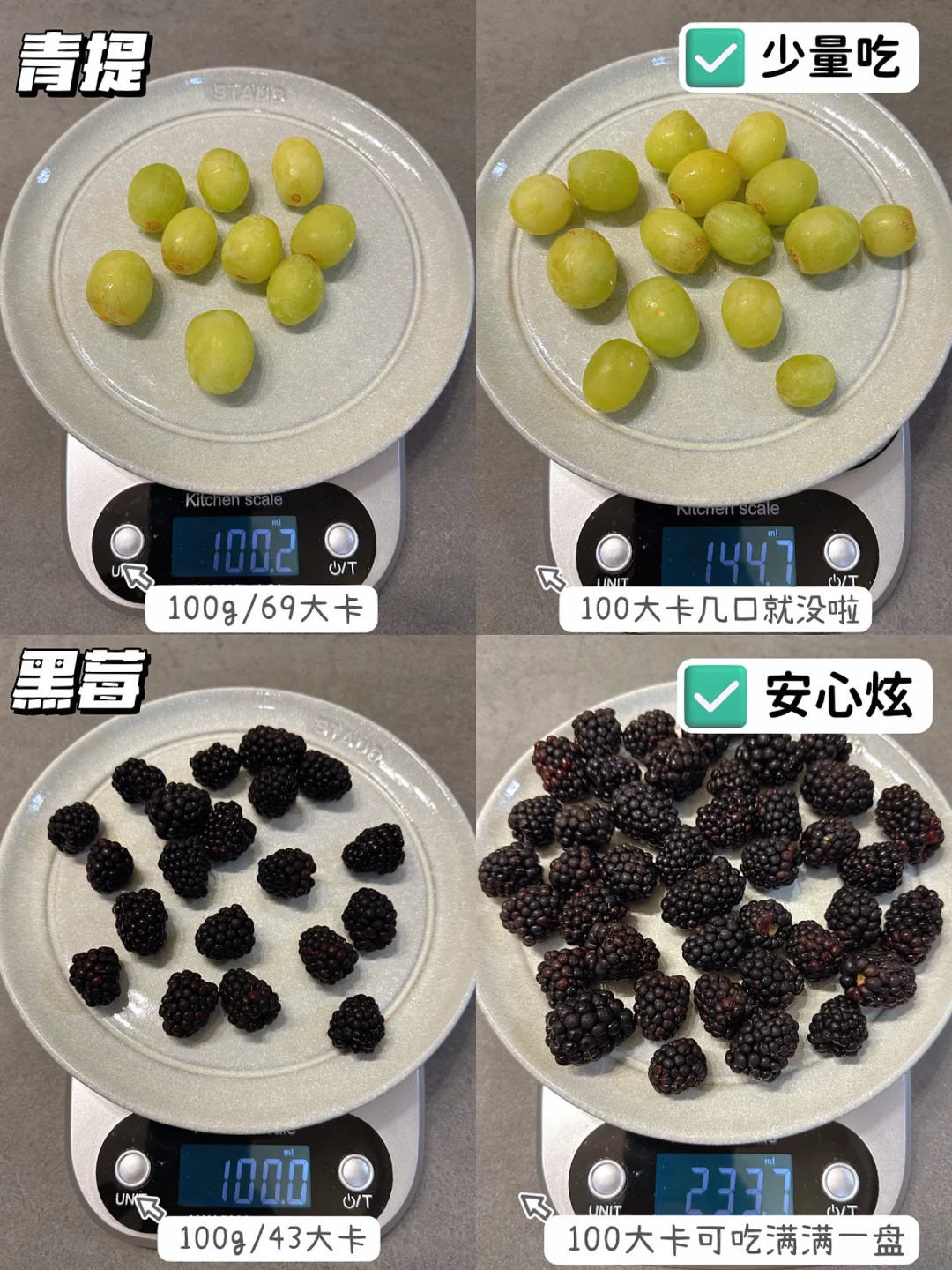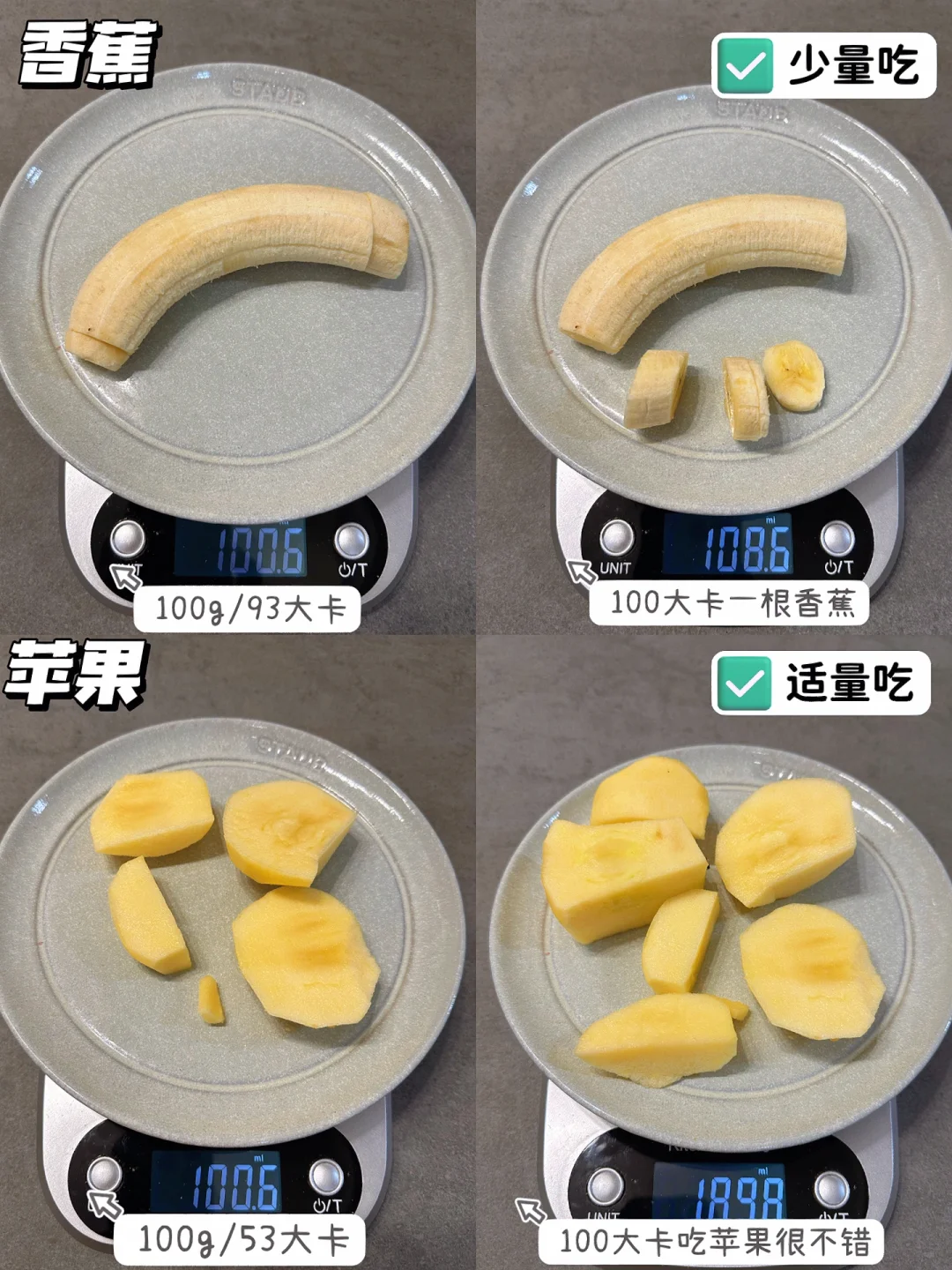 今天给姐妹们整理了100g水果🆚100大卡水果的对比图
