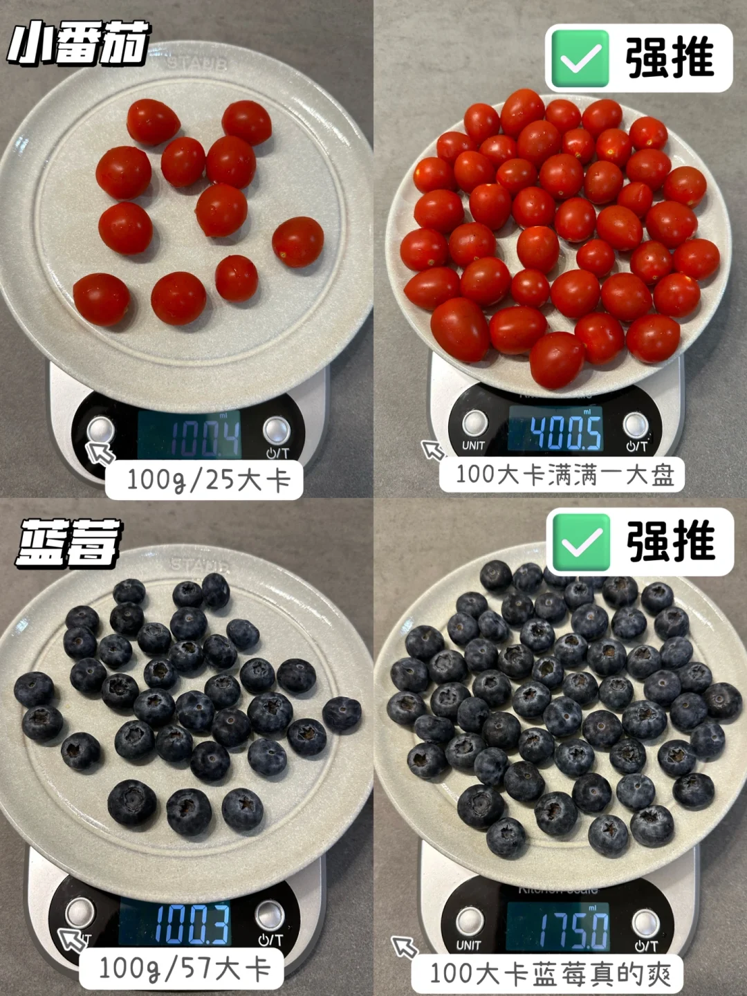 ✅低糖水果:蓝莓/草莓/树莓/黑莓/小番茄
