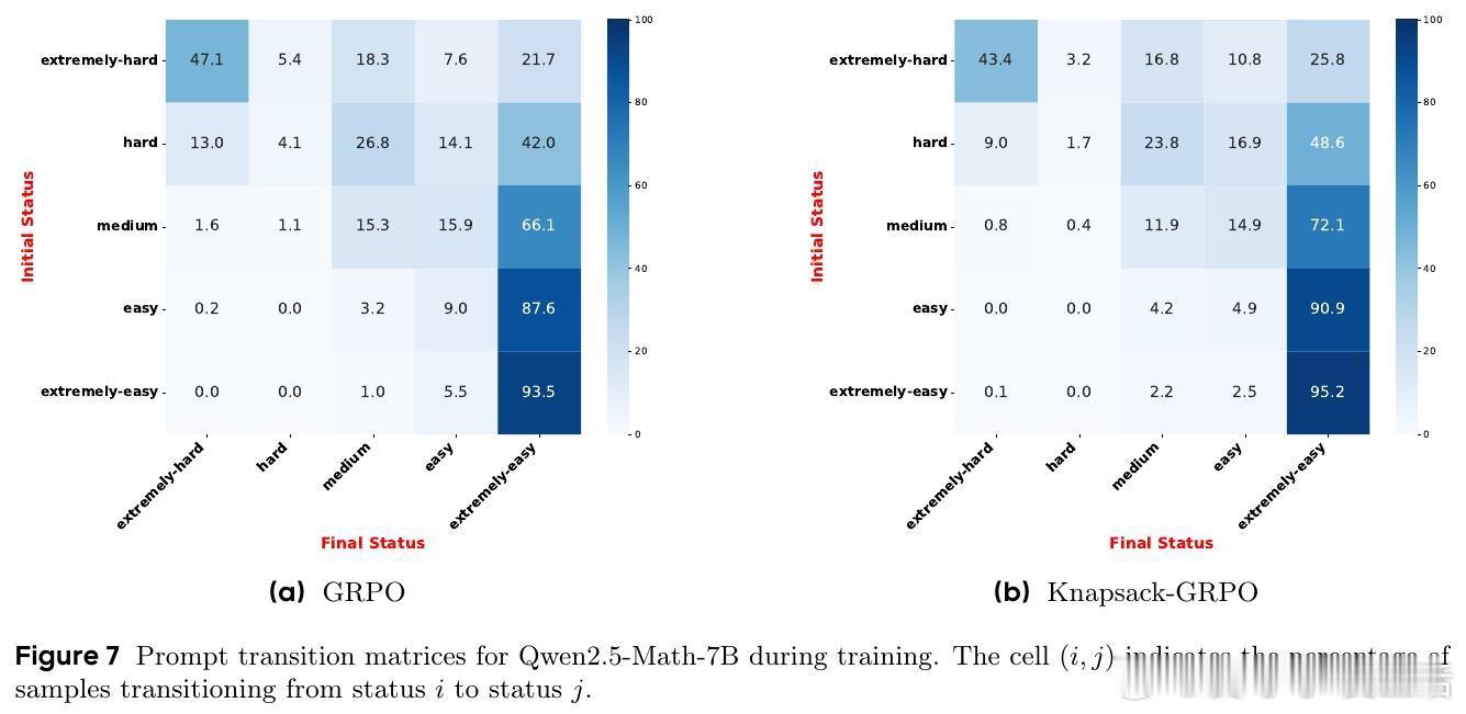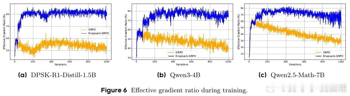 - 该方法在Group Relative Policy Optimization(GRPO)框架下,提升非零梯度比例20%-40%,相当于“免费午餐”,无需额外计算资源即可提升训练效率。