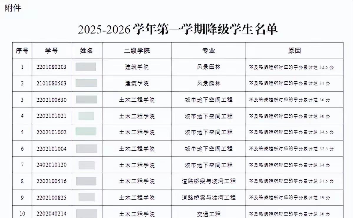 天津城建大学54名本科生集体降级,这事儿一出可炸锅了。“混大学”的日子怕是越来越不好过咯。以前很多人觉得上了大学就进了“保险箱”,课爱听不听,考试临时抱抱佛脚。可现在学校监管越来越严,学分修不够就得降级。 就说这54个学生,肯定是平时没把学习当回事。大学可不是用来混日子的,是提升自己的地方。学校这么做也是给其他学生敲警钟,别以为进了大学就能松懈。“混大学”的路,真的慢慢被堵死啦,大家还是得好好学。