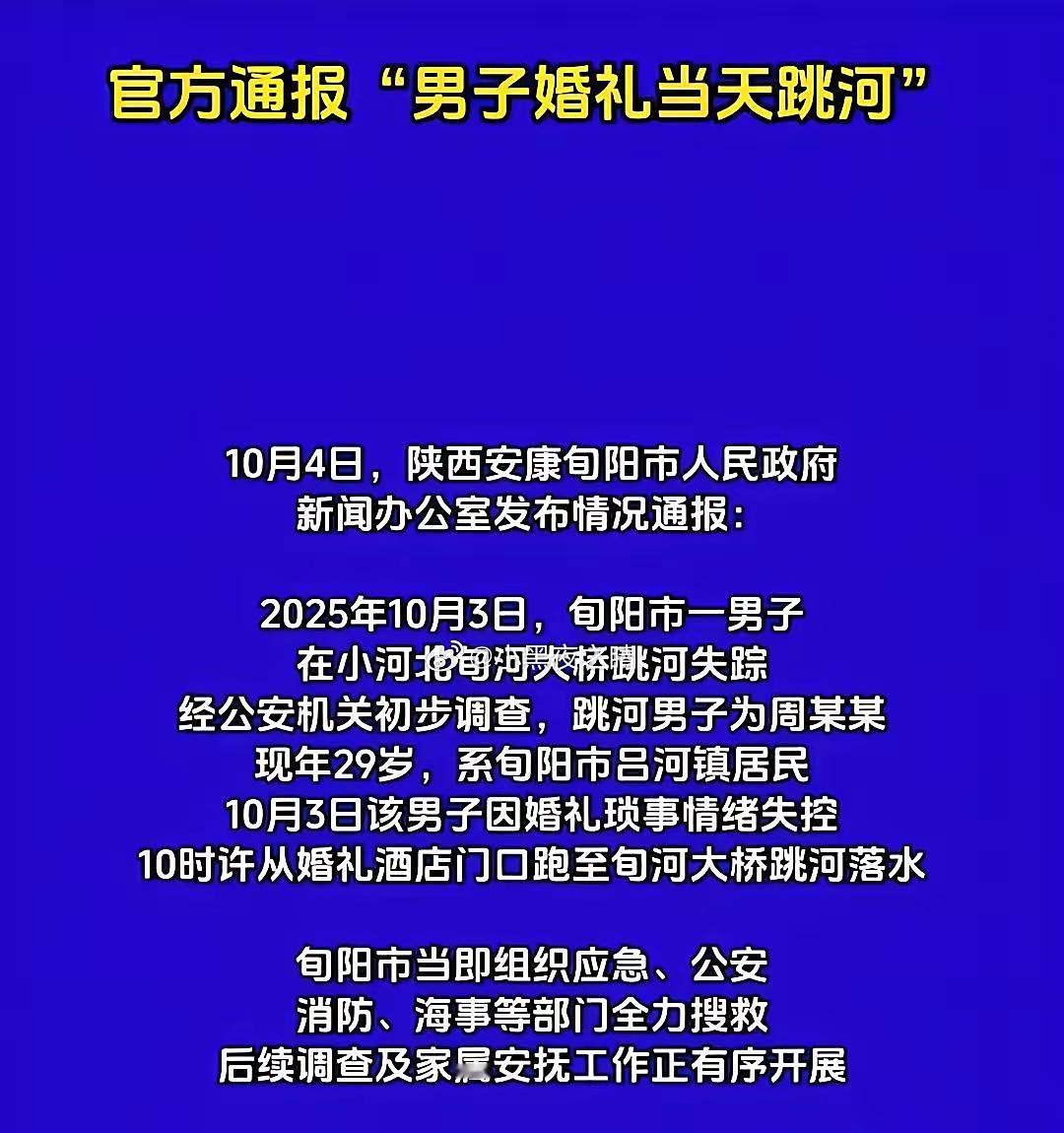 新郎跳河的后续情况引发关注:两人两年前就订了婚,新娘母亲在当地小有名气,原本准备的60桌婚宴突然中断。 29岁的新郎是研究生毕业,听说从事教师工作,当时他和新娘都到了酒店门口,不知为何发生争吵,之后便跳进河里没了踪影。 警方通报提到,这事和彩礼没关系,是“因琐事”引发。但到底是什么样的“琐事”,会成为压垮新郎的最后一根稻草呢? 新郎父母在农村,家境普通,为了他结婚刚买了房、装了修,花了不少钱。新郎研究生毕业没多久,工作年限不长,积蓄应该不多,这些开销想必多是家里承担的。 对他来说,这些年的压力肯定不小。这年头读研究生,毕业前要和导师沟通协调;好不容易毕业成了老师,日子刚有起色…… 或许压垮他的不是某一件事,而是很多事累积起来的重量。农村孩子跳出农门本就不易,到了大学、社会上,有没有家庭的支撑,差别很明显。 可能他觉得自己过得太苦了,总比不过别人,还总被挑剔。不管具体因何想不开,那一刻,他大概觉得:人间不值得。 #新郎跳河#