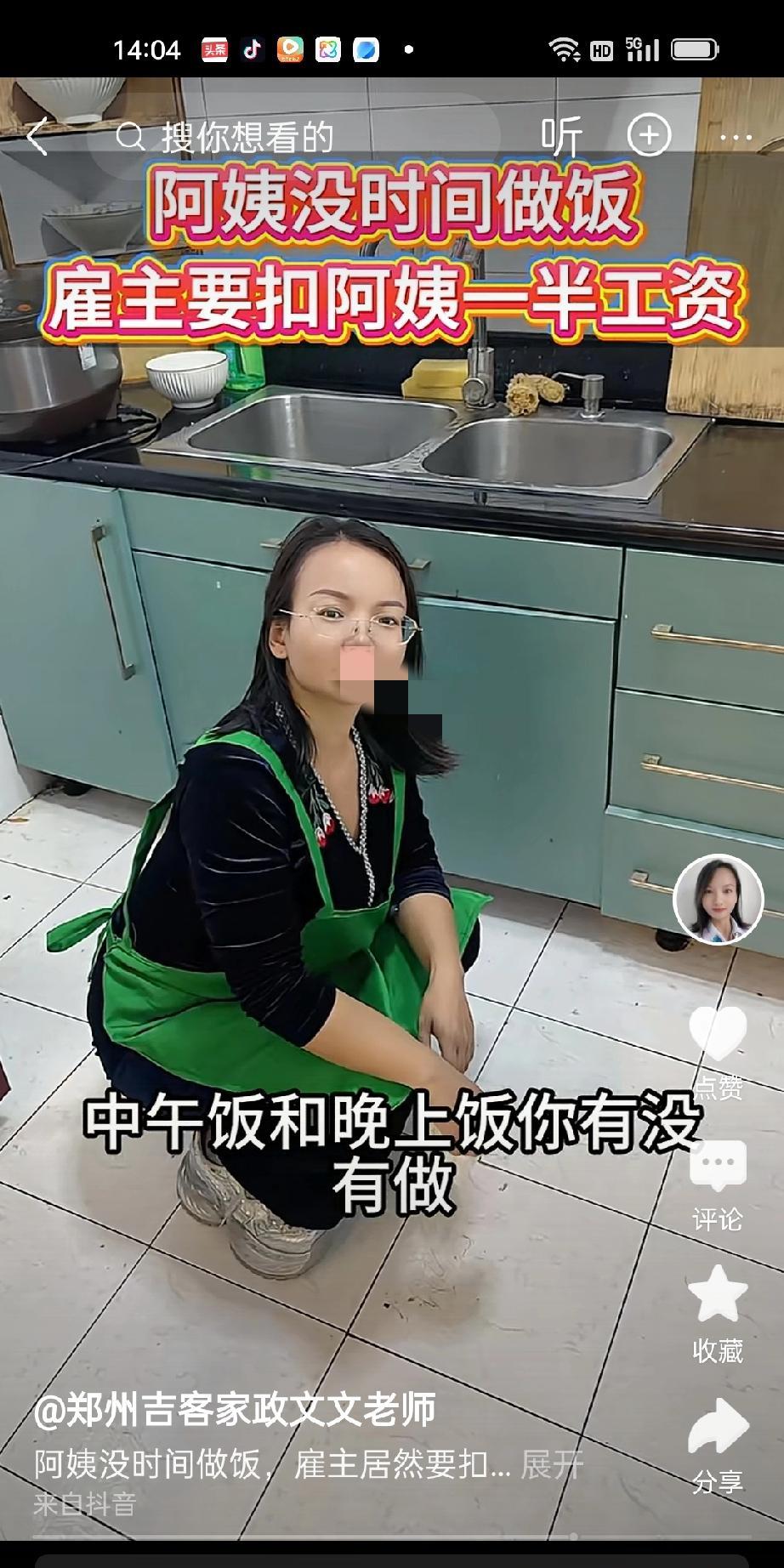 雇主对着正在擦地的保姆说,你下户吧。保姆一脸疑惑,我干的好好的,怎么就不让我做了呢?雇主问她,你中午和晚上都不做饭,你在干啥?保姆理直气壮地回应,小孩醒了,我在哄小孩,就没时间做饭。合同上不是写了哄小孩和做饭只需做一件吗?雇主生气地说,我看你就是懒,找借口。你这样以后也别说一个月8000了,就4000吧。能干就干,不能干拉倒。保姆把抹布一扔,我不干了,你找别人吧。