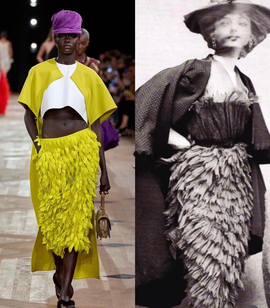 -传奇面料Gazar的回归:他重新启用了这种由Balenciaga先生与面料商共同发明的标志性挺阔面料,并将其融入现代廓形。