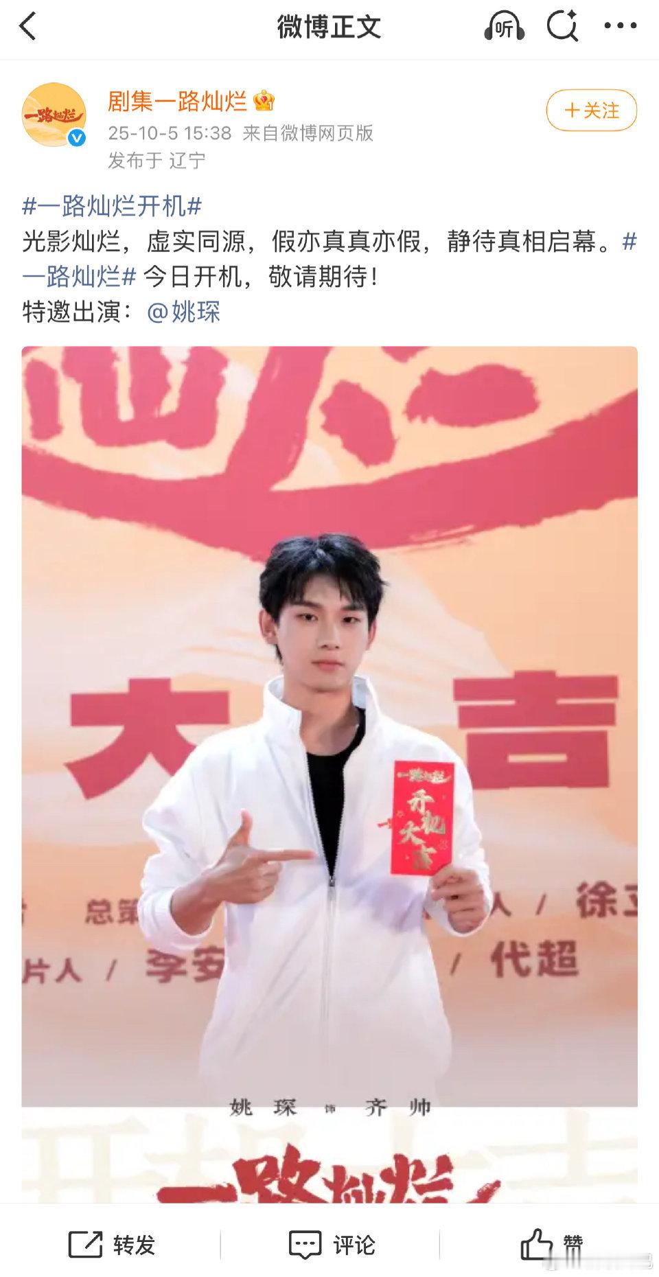 一路灿烂,姚琛单人官宣博被田嘉瑞粉屠了,理由是剧组承诺只有男主单宣