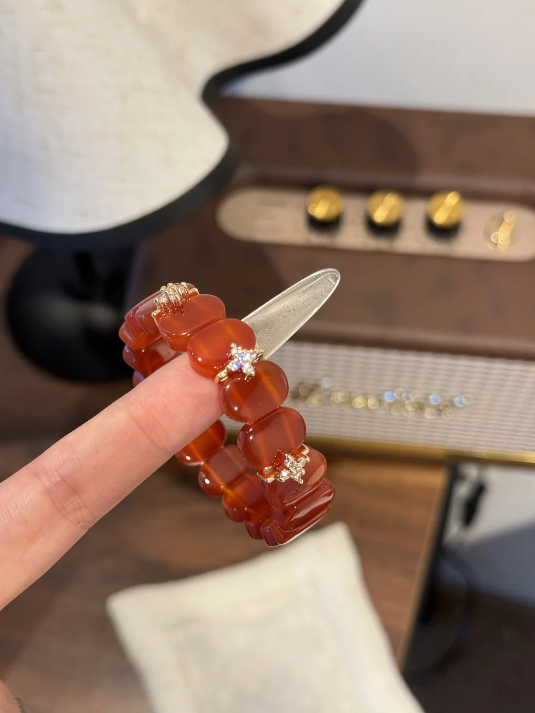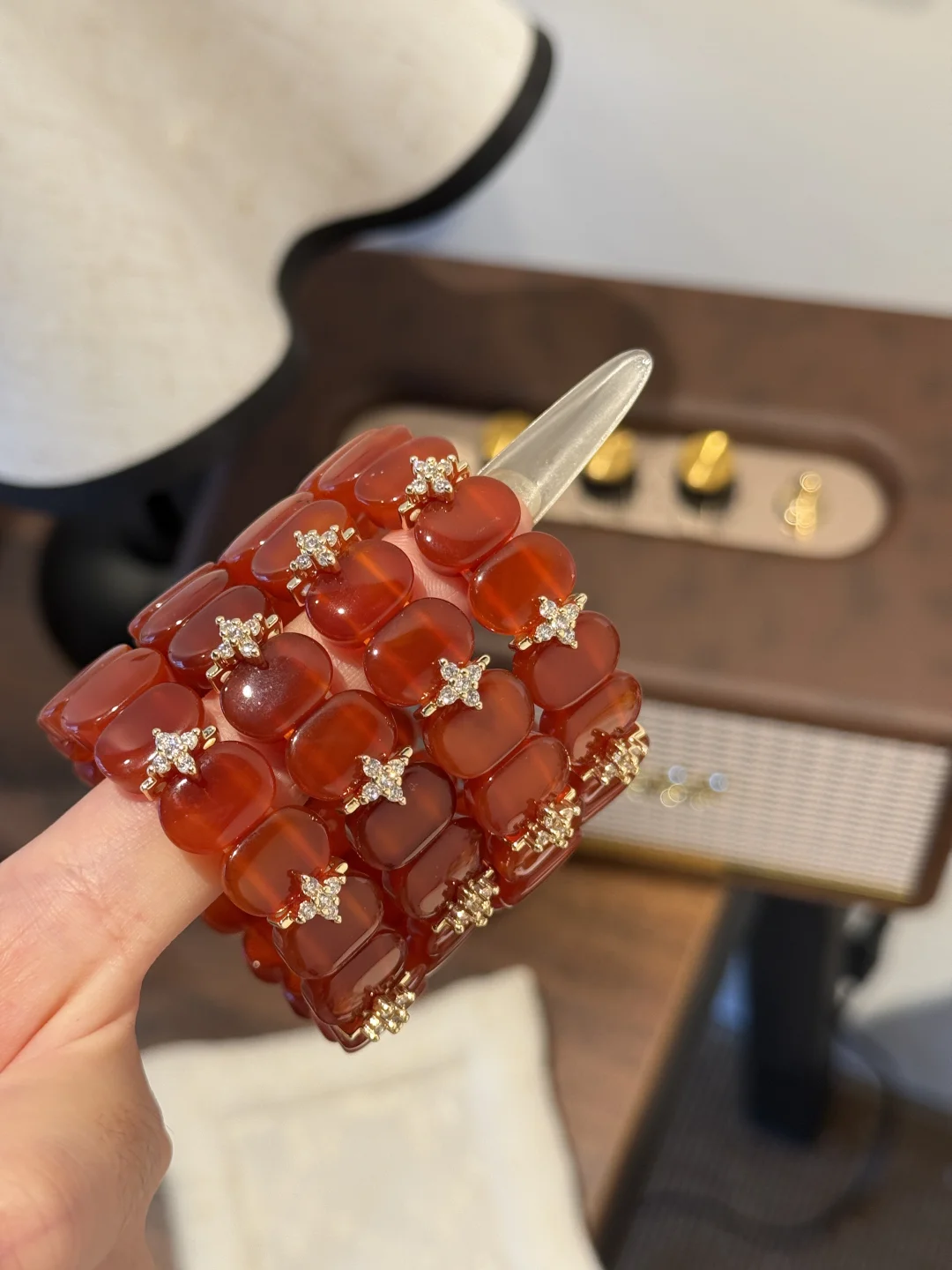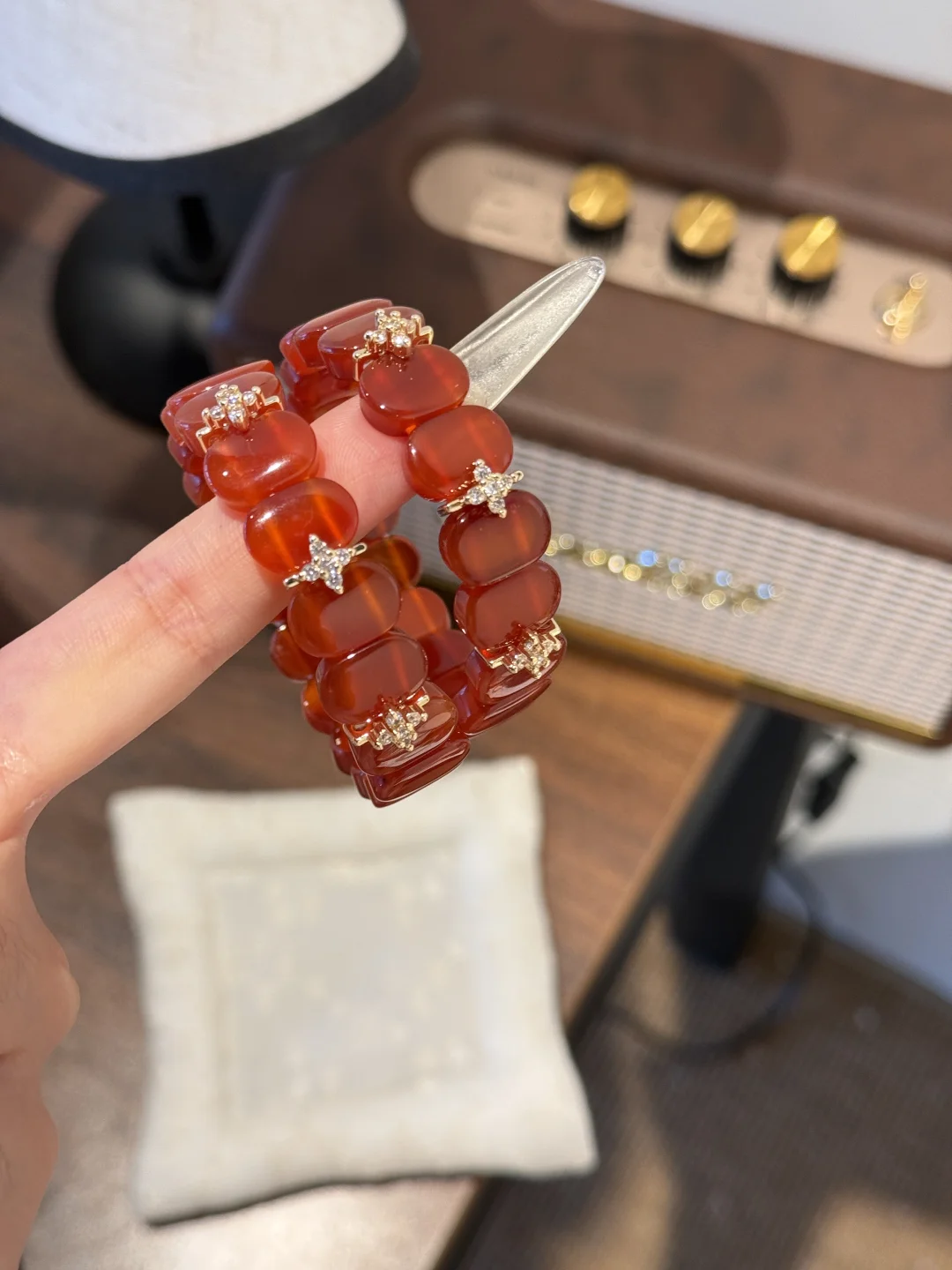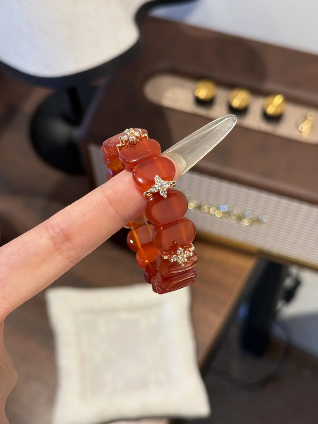 小时候其实并没有那么喜欢红色🎈 只觉得它是新年限定色 当红色铺满长街 家家户户点上花灯的时候 就是一年中最热闹的时候🪭 可是长大后越来越喜欢红色系 没有什么比红色系更显白更张扬的了 一个无法形容无法比拟可又无法拒绝的颜色 搭配四叶草 手牌就像手镯一般 但是佩戴体验又舒服