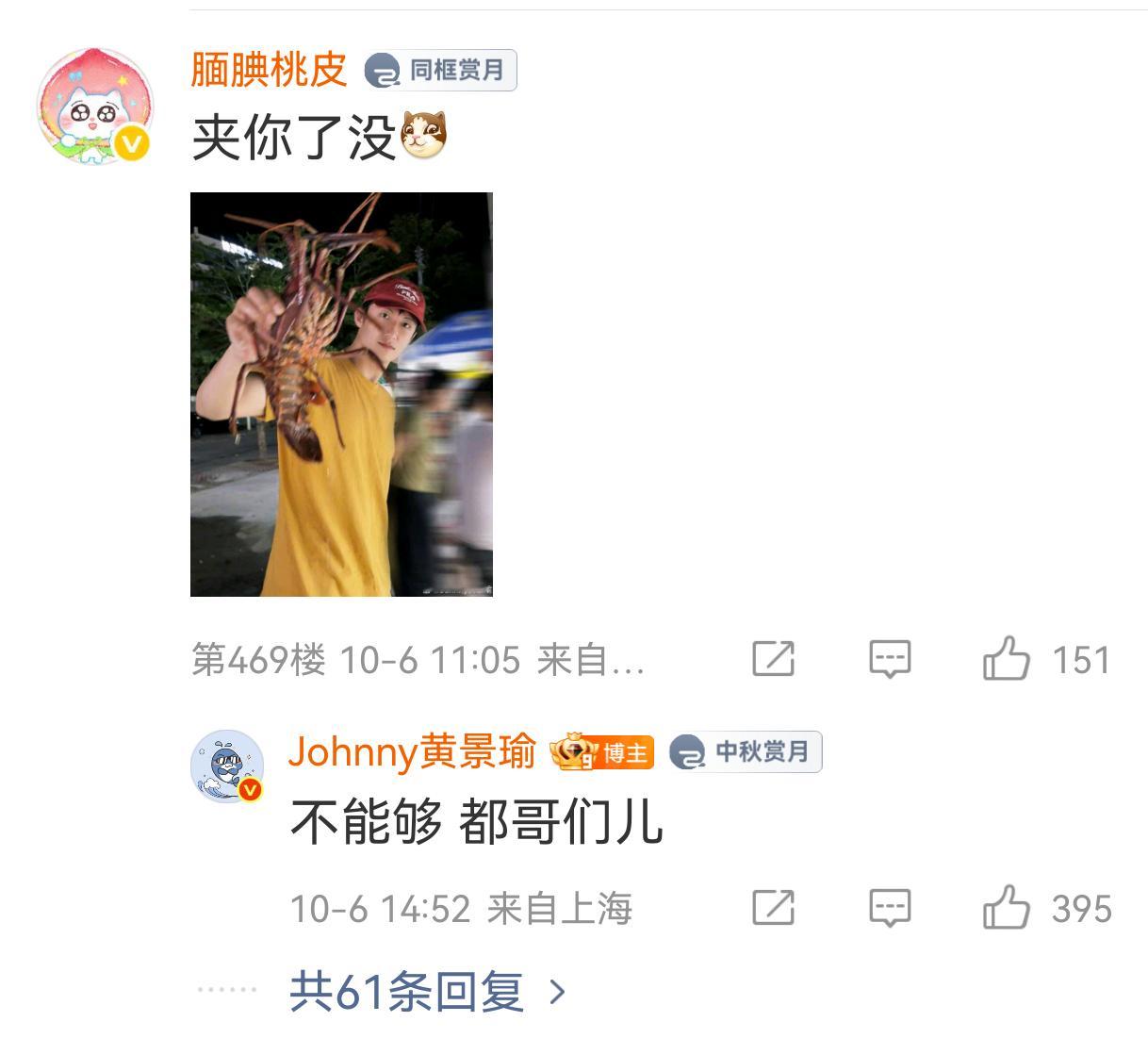 黄景瑜嘴硬这一块黄景瑜︱2025中秋翻牌记录跟大龙虾称兄道弟这一块也是没谁了可爱