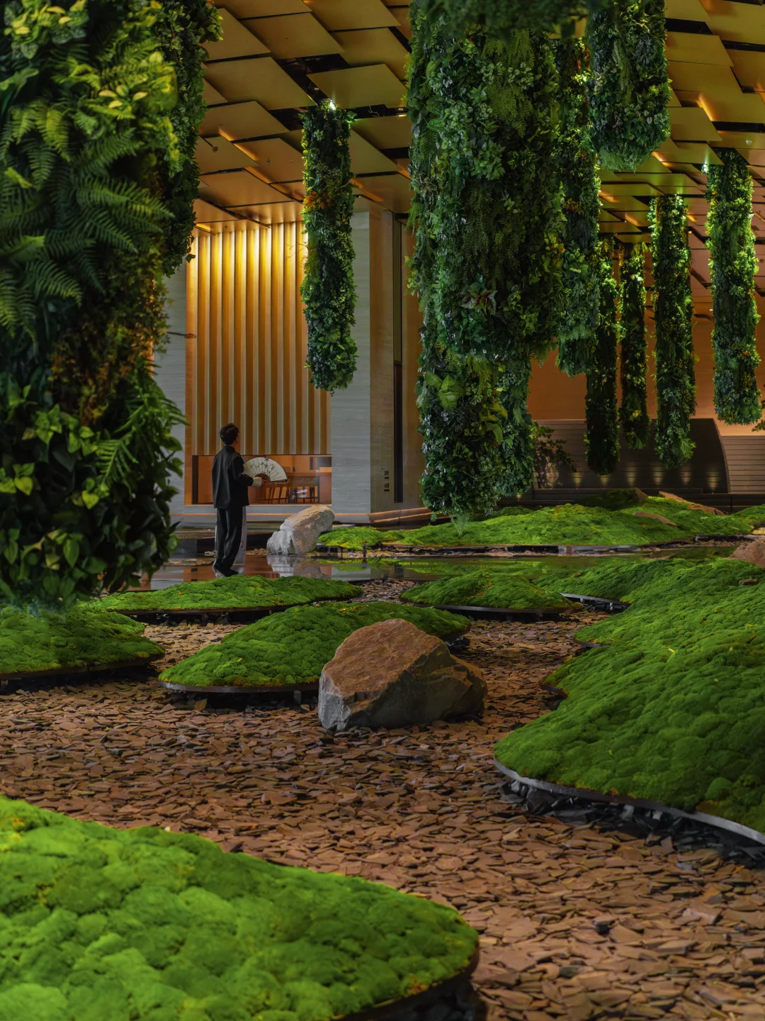 ▪️酒店大堂用青苔打造出牛首山景元素,一到能感受南京自然之景,在氛围上营造了让人放松的感觉,很能打动注重居住体验的人~