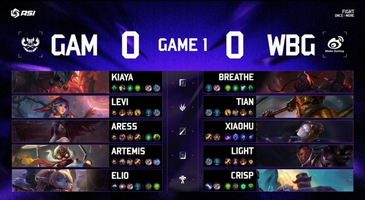 [15:45]先锋团,Breathe赛恩开车撞空,双方拉开,随后Levi吃掉小龙,WBG推掉GAM中路一塔,经济落后1k。