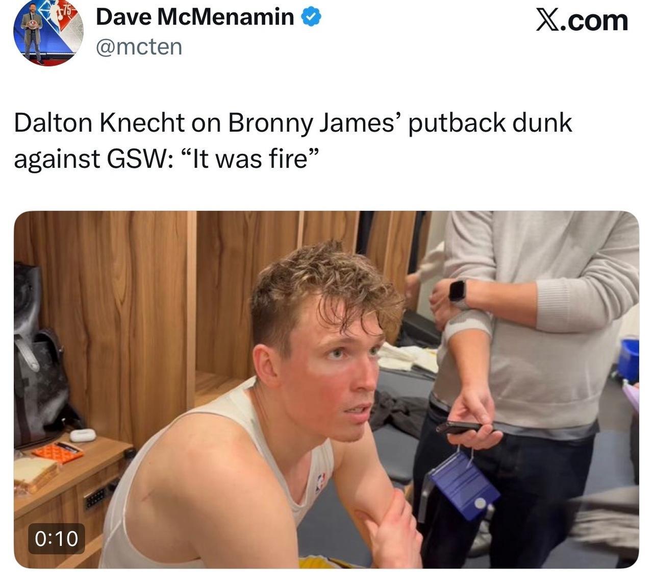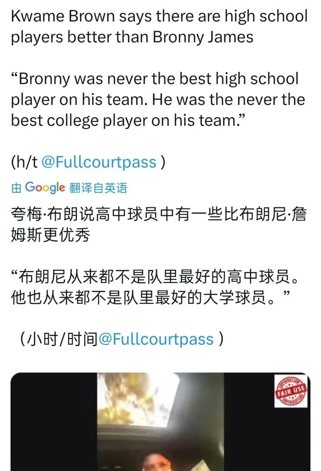 你们这些当叔叔的让着点布朗尼吧!!!布朗尼炸裂补扣! 最近湖人连续两场季前赛都输了,布朗尼手感也是不佳,他的表现遭到了前NBA球员夸梅-布朗的攻击,布朗尼完全不被看好。 布朗尼才刚刚21岁,不过他从进入联盟就基本没有被看好过,如果不是他的老爸是詹姆斯,可能布朗尼确实很难立足在NBA,但是布朗尼这个孩子还是很谦逊的,也比较低调,他就希望自己能够好好打球。 在对阵勇士的比赛中,作为经常跟着老詹混的追梦-格林,也是布朗尼的叔叔辈,竟然在比赛中对布朗尼暗下死手,这些招数都用到小辈身上了吧。 你们这些前辈当叔叔的就不要恶语诋毁或者场上搞小动作了,多像克内克特学习,即使他表现不好仍然为他比赛中贡献精彩的补扣而喝彩。