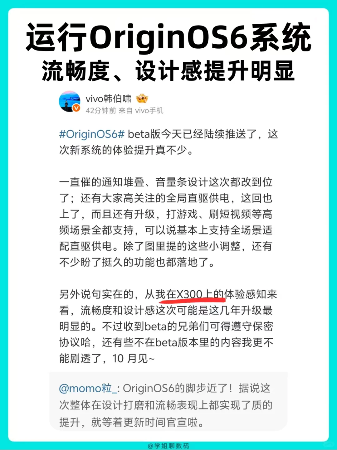 🕹 另外,产品经理还提到了这款手机运行OriginOS 6的系统体验,流畅度、设计感表现都很好。