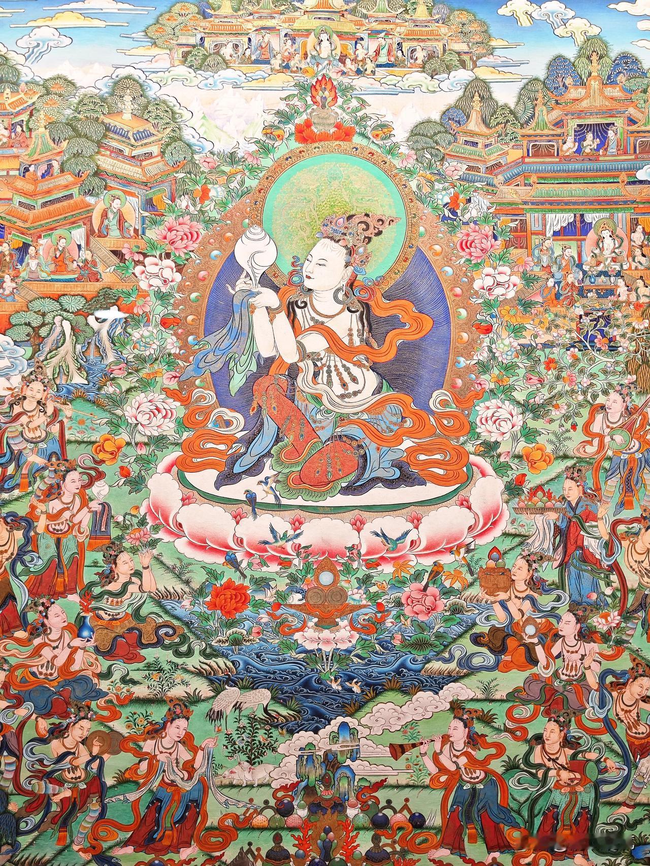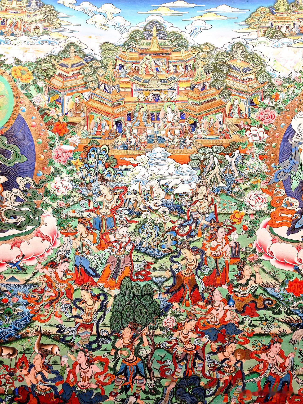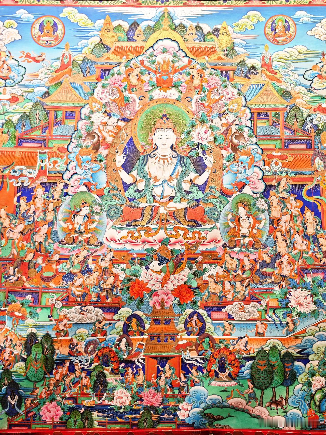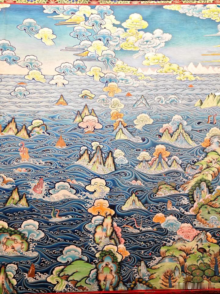 在西宁,选择参观「藏文化博物馆」确为明智之举。“镇馆之宝”唐卡长卷,实在太壮观、太精美、太震撼了!不虚此行! 整幅唐卡全长618米、宽2.5米、画面达1500平方米、重约1吨多。涵盖藏族对宇宙形成的认识、历史、宗教、医学、文化生活等诸方面,讲述了从古至今、从自然到人文、从神话传说到芸芸众生的千百故事。 据统计,组成长卷的700多幅唐卡,共包含18万3千多个人物。 唐卡创作使用的纯天然矿物颜料,包括金、银、珍珠、珊瑚和玛瑙等矿物宝石,以及藏红花、大黄等名贵植物。据说在保存条件适宜的情况下,可以永不褪色。 唐卡「彩绘大观」从策划到完成,足足用了27年!上世纪80年代,青海的工艺美术大师宗者拉杰用二十余年的时间,奔赴各地搜集资料、调查考证,之后他组织青海、西藏、甘肃、四川和云南五省区400多位藏、蒙、土、汉的学者、专家、工艺美术师,共同绘制了4年,方绘制完成这令人叹为观止杰作。