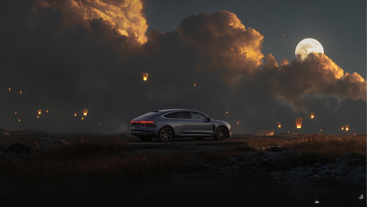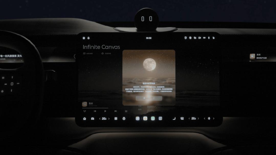 在车机屏幕点击系统推送卡片,即可解锁智能大灯的“月亮”迎宾投影功能,而且车内氛围灯还会联动。