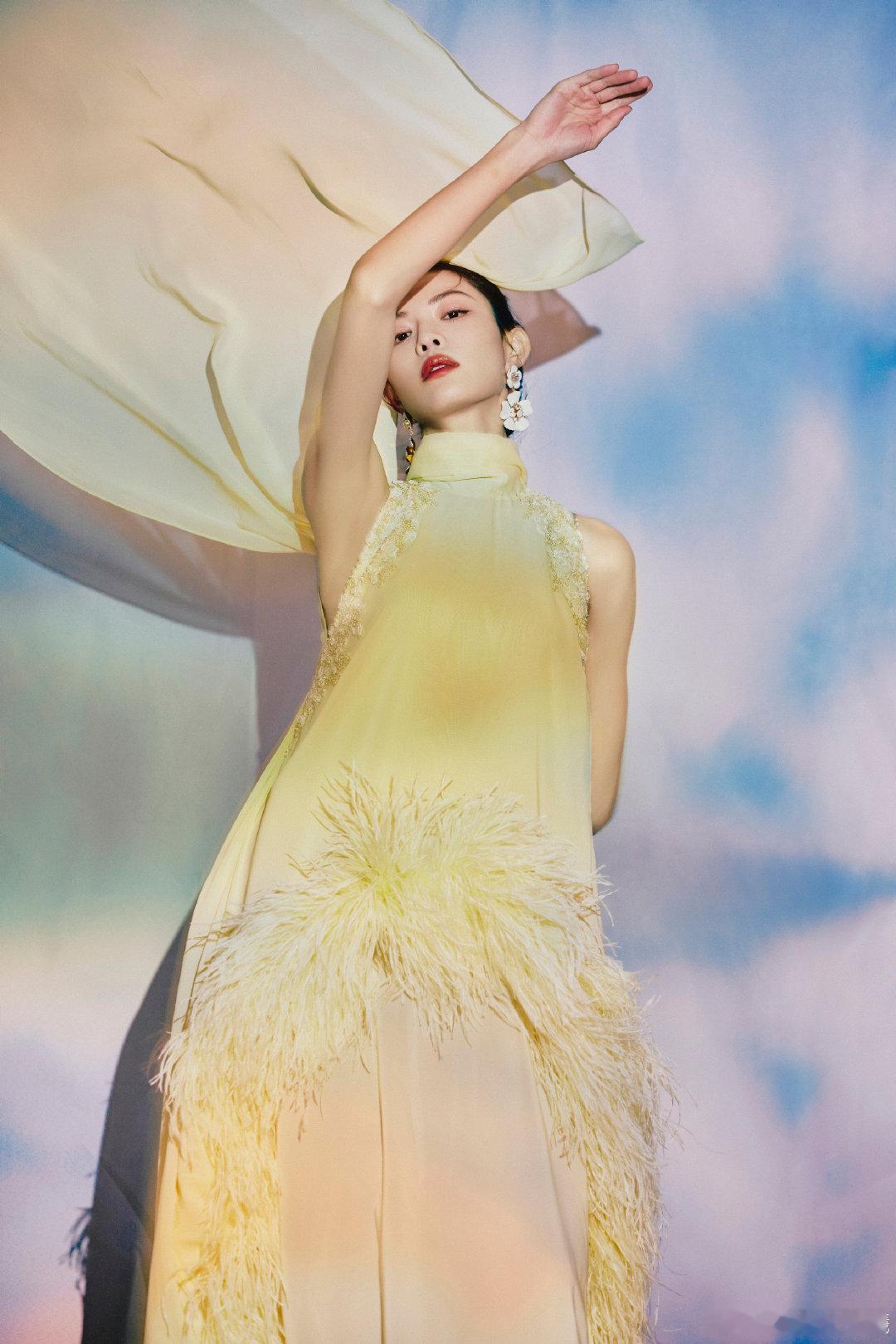 钟楚曦月光羽毛裙央视中秋晚会钟楚曦一袭月光羽毛裙,轻盈灵动,宛如月下精灵。羽毛随风摇曳,散发出浪漫气息,尽显优雅迷人的气质。