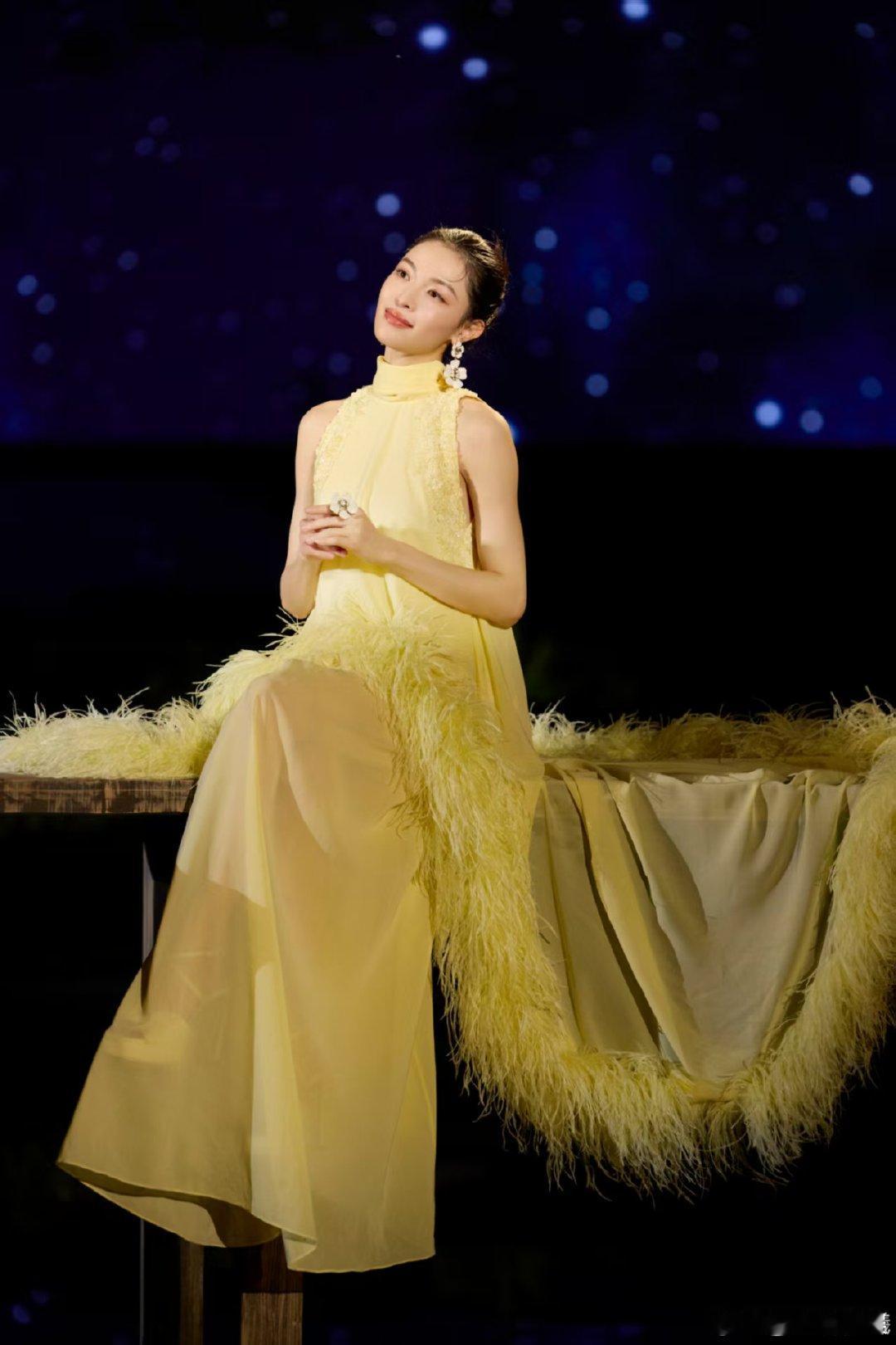 钟楚曦月光羽毛裙央视中秋晚会钟楚曦一袭月光羽毛裙,轻盈灵动,宛如月下精灵。羽毛随
