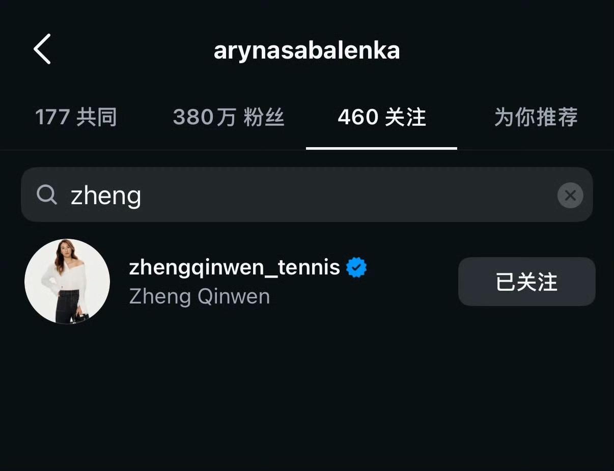 昨晚武网开幕式热聊之后,郑钦文与萨巴伦卡在ins上立马互相关注了。 郑钦文的粉丝