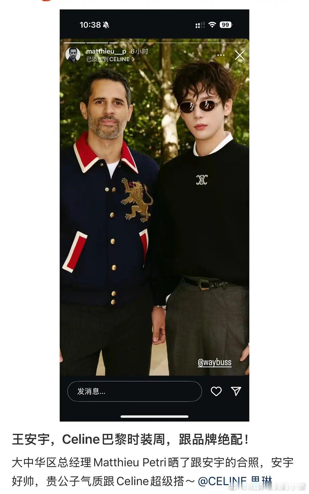 CELINE 大中华区负责人晒和陈哲远王安宇合照[跪了]