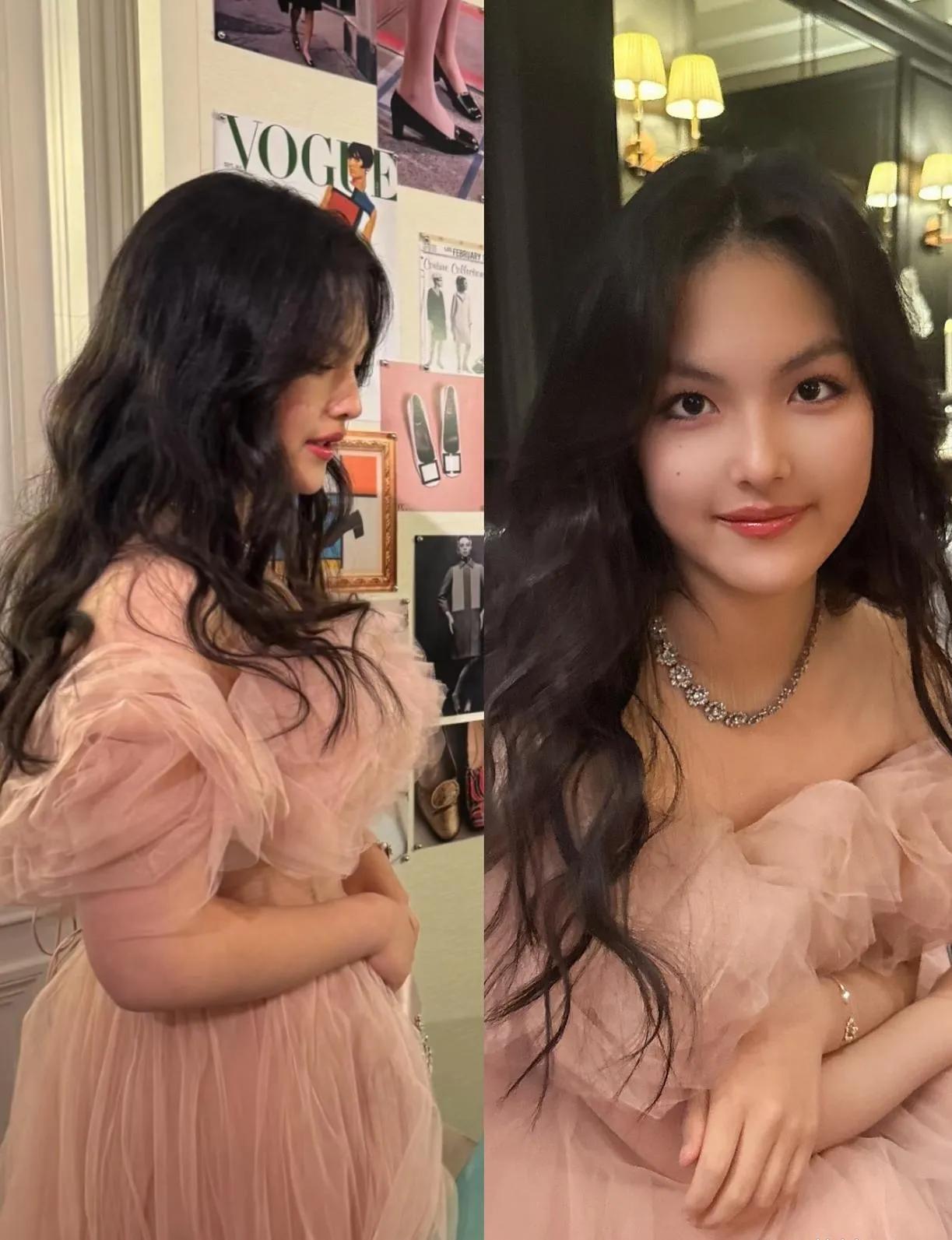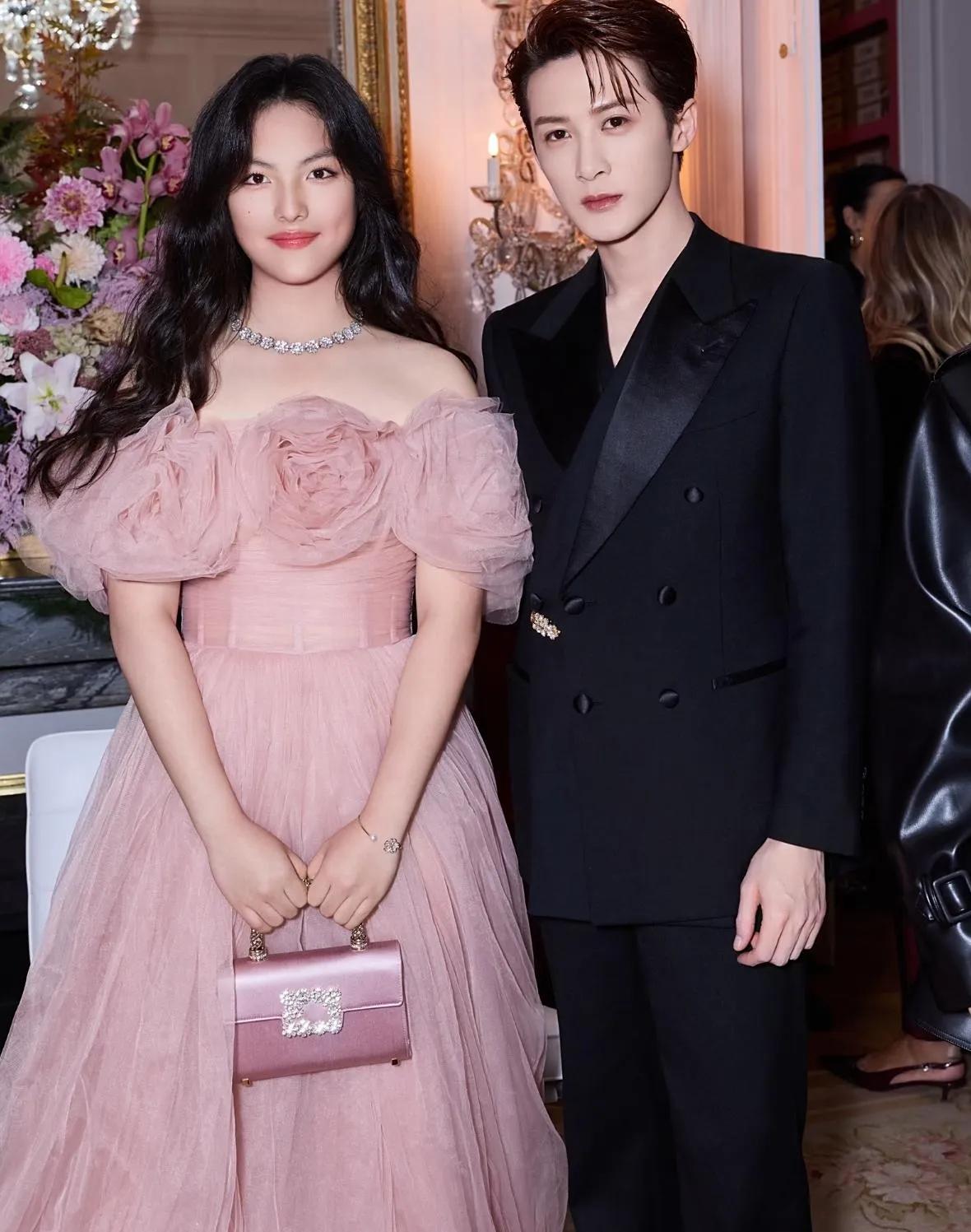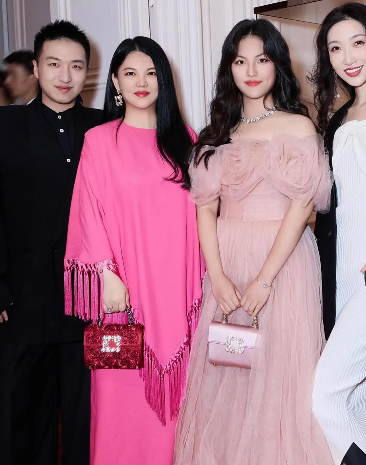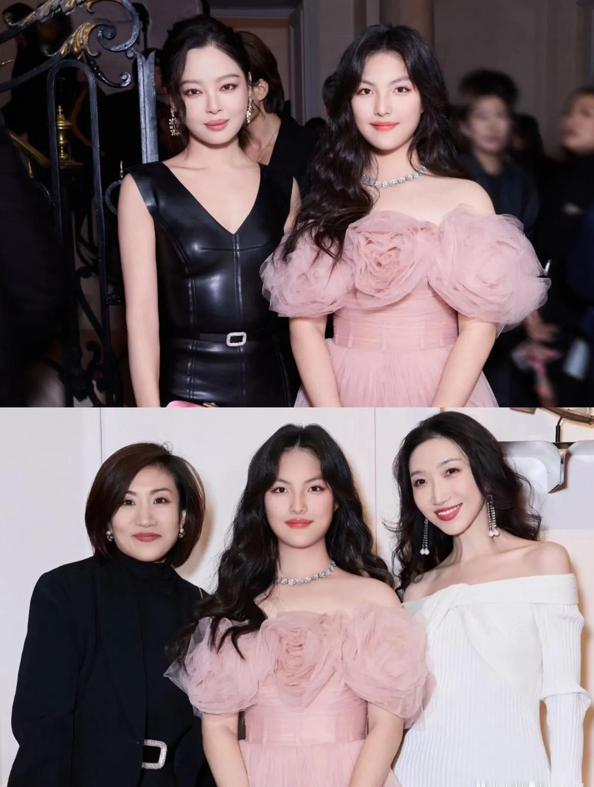 王诗龄随李湘亮相品牌晚宴,气质愈发优雅出众 近日,王诗龄又跟随妈妈李湘一同出席了某品牌晚宴,母女二人在活动中的亮相引发了众多关注。 当晚,王诗龄身着一袭粉色蓬蓬纱裙,宛如从童话中走出的公主。裙身肩部花朵造型设计别致,为整体造型增添了几分浪漫与甜美 ,搭配同色系的精致手拿包,以及闪耀的钻石项链,每一处细节都尽显精致。一头乌黑的长卷发自然垂落,衬得她的脸庞愈发娇俏可爱,妆容精致淡雅,在镜头前自信大方,笑容甜美,气质优雅从容,与小时候相比,如今的她真是女大十八变,时尚感和气场都直线上升。 李湘则选择了一套玫粉色的穿搭,宽大的披肩设计搭配流苏元素,气场全开,手拿红色的精致手包,与整体造型相得益彰,尽显贵妇风范。母女二人同框,温馨又养眼,完美诠释了不同年龄段的魅力。 在晚宴现场,王诗龄还与众多明星同框合影,丝毫不见怯场,落落大方的姿态赢得不少称赞。从曾经备受关注的“小胖妞”,到如今时尚晚宴上闪耀的少女,王诗龄的蜕变有目共睹。期待未来她能继续绽放光彩,在更多场合展现自己独特的魅力! 王诗龄 李湘 品牌晚宴