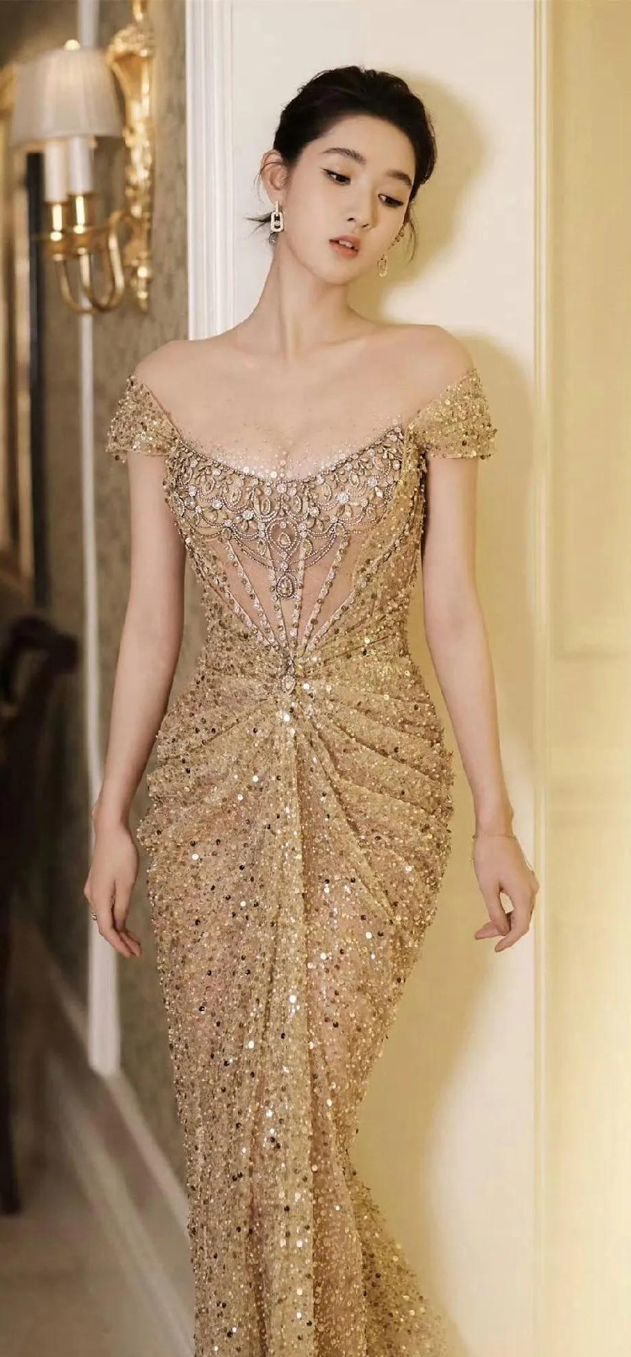 王玉雯红毯造型太绝了 王玉雯这次的红毯造型真的美到失语!一袭金色露肩礼服,把她的好身材展现得淋漓尽致,闪闪发光的面料在灯光下超有质感,肩部的设计又增添了几分优雅,开叉的细节还透着小性感,搭配精致的耳饰,整个人就像从童话里走出来的公主,又美又贵气,状态也特别好,真的被她惊艳到了~ 王玉雯 红毯造型