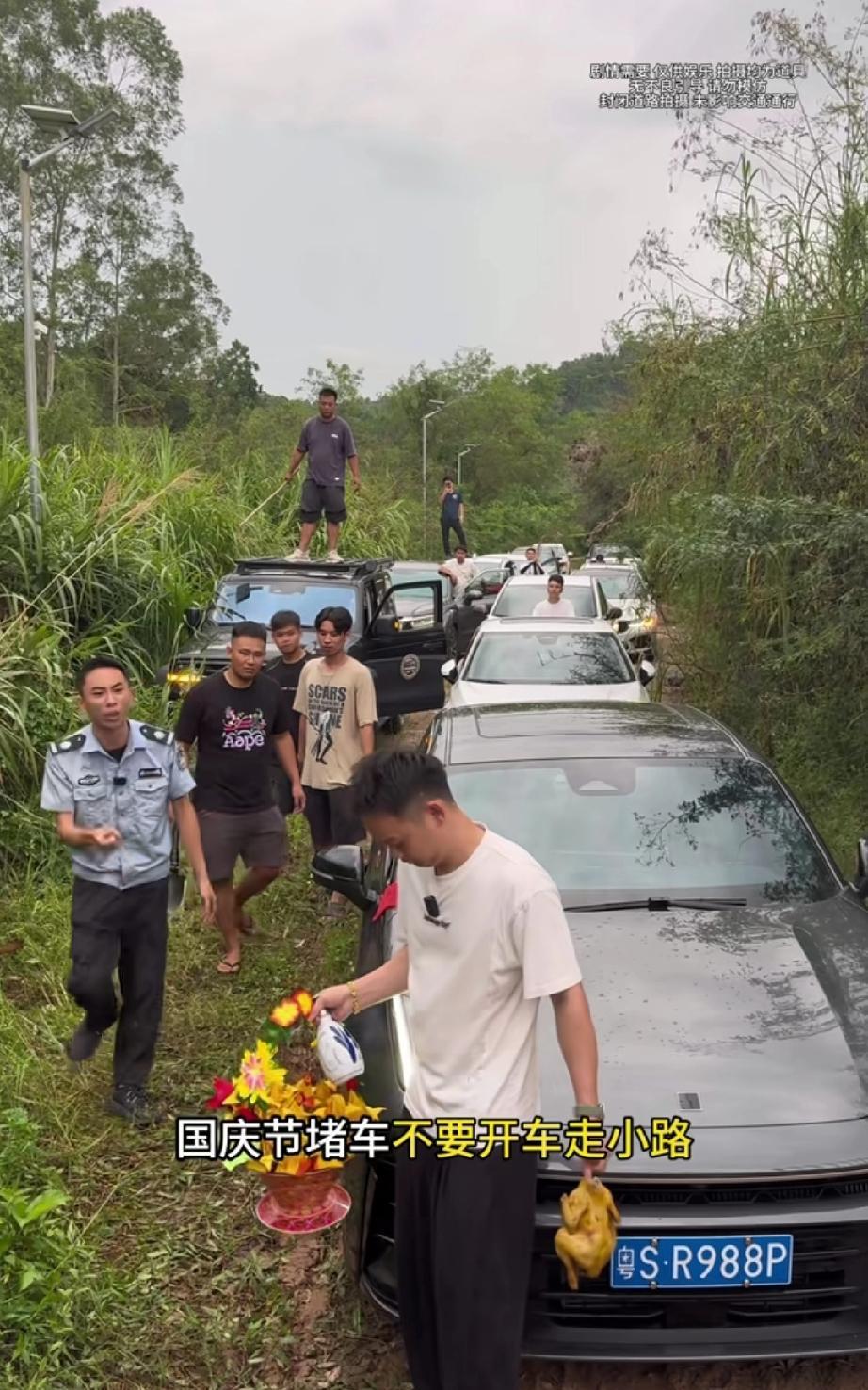 原本打算抄近路进景区,谁承想这么一跟车,大家都堵在路上了。 面对不熟悉的道路,千万别随意跟着别人的车走。说不定人家只是回去办点事,结果大家都跟着进去,最后堵成一团,这能怪谁呢? 视频里的画面绝对是真实的,不过为了不误导网友,发布视频的人用了极小的一行字说明这是剧情演绎。 你们觉得这真的是剧情演绎吗?