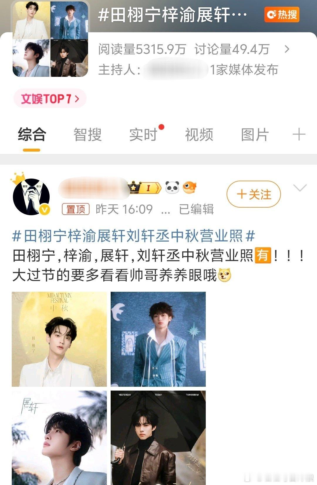 田栩宁、梓渝、展轩、刘轩丞中秋营业照,一营业就rs,好🔥帅哥营业!