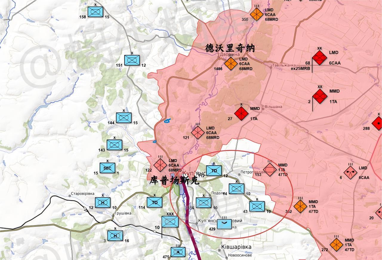 负责库普扬斯克的乌克兰第10军团三个旅被包在奥斯基尔河以东,一副要覆灭的死样子。蟋蟀也是尽力了,库普扬斯克要是快没了,不行就再调第143和第144两个旅过来陪葬。