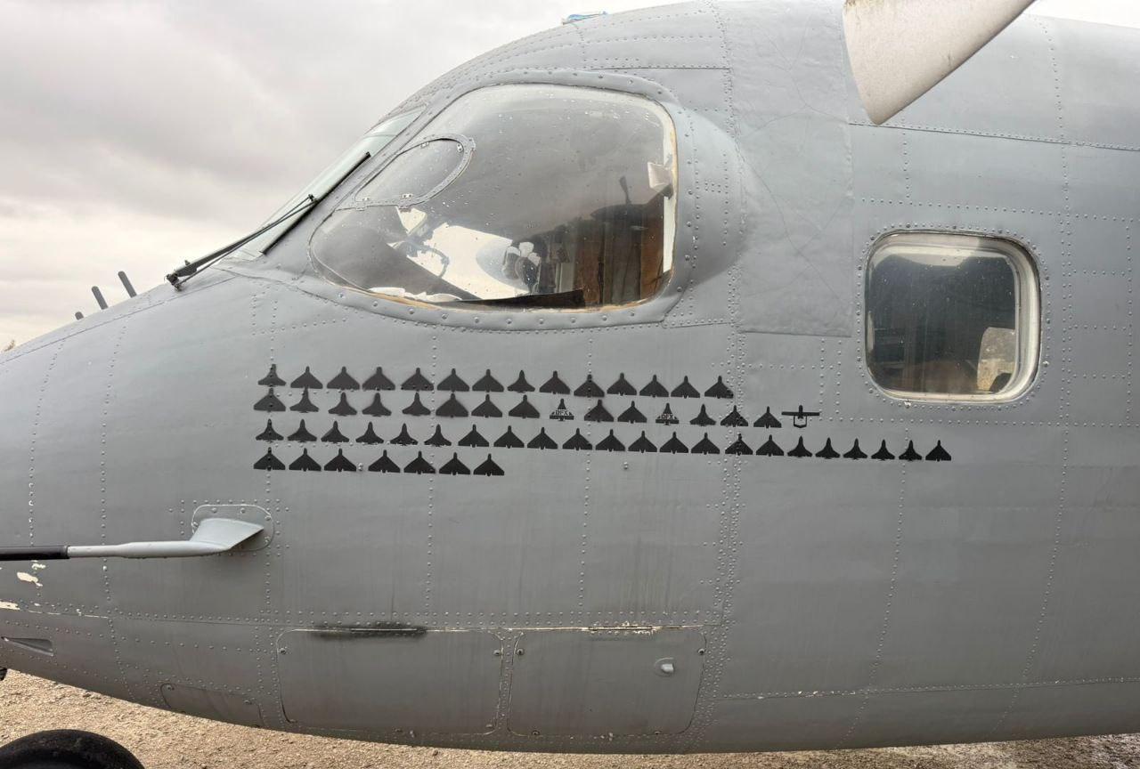 乌克兰军队的安-28运输机,用于拦截无人机。战绩图案包括“天竺葵2”级无人机和“非洲菊”诱饵无人机,以及一架身份不明的无人机,其团类似于Bayraktar TB2或Mohajer-6/Forpost。安-28运输机至少飞的比雅克-52快,能追上大多数无人机。不过图片不完整,很好奇这玩意拿什么打无人机?机炮吗?安装在哪里?或者用舱门机枪吗?