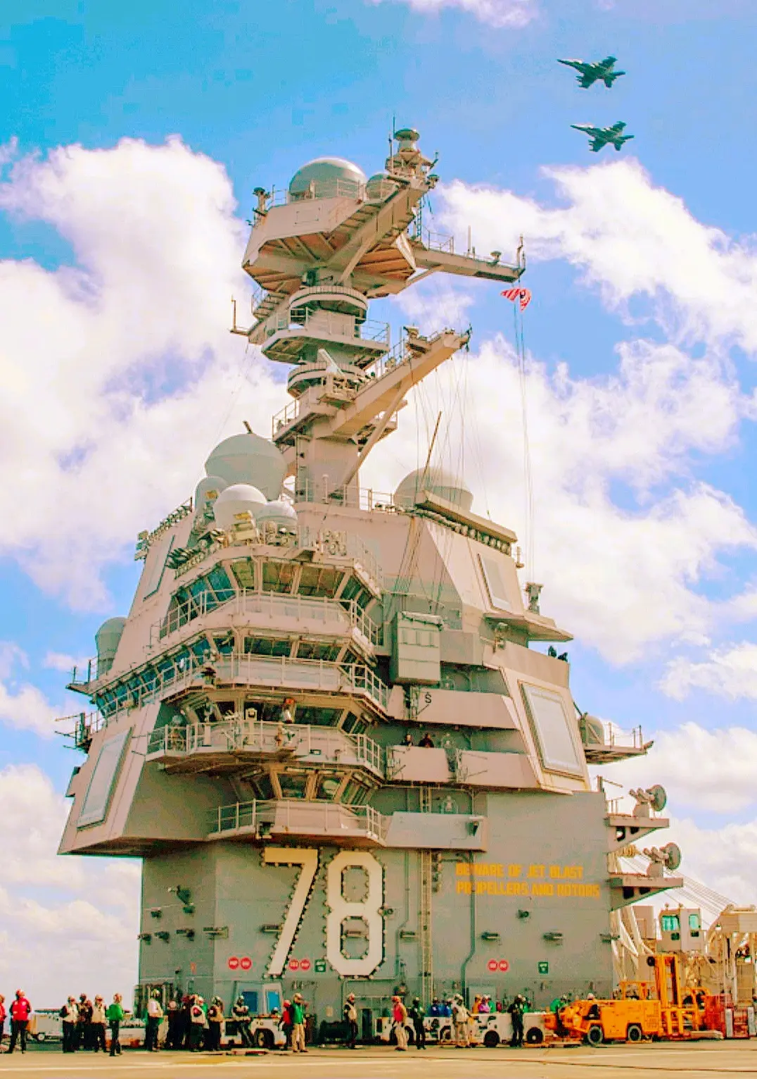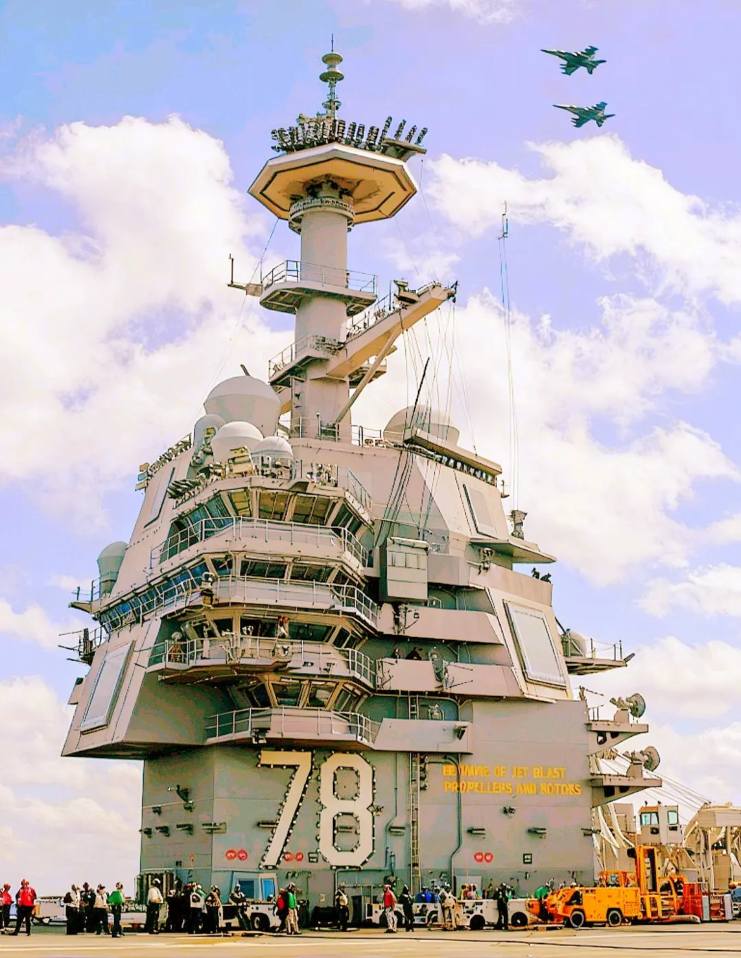 福特号航母的四款不同的舰岛图片,除了第一张是真的,其他三张都是我用豆包AI软件帮忙魔改的😂😁😃😄所以大家看这4张图片,图个欢乐就行了,不要在意那些没用的细节😊😏😆😜 高能压迫感海军装备舰岛+信号天线美国🇺🇸鹰酱航空母舰