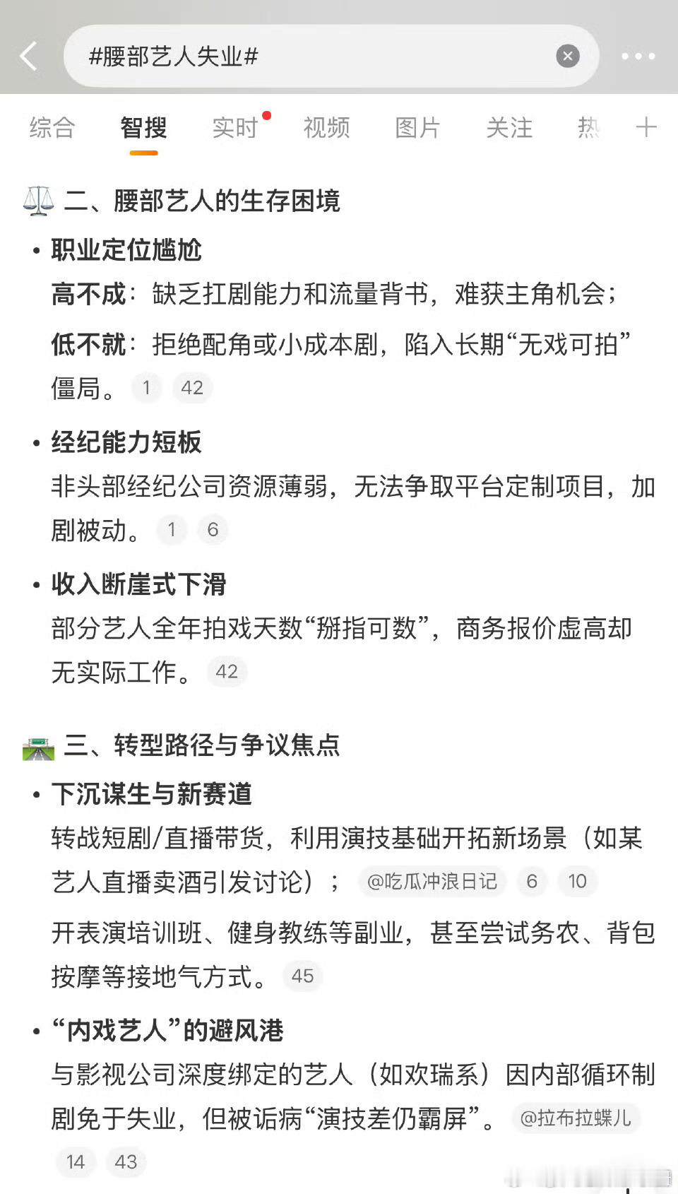 腰部艺人失业热一了,来康康智搜分析,你怎么看?