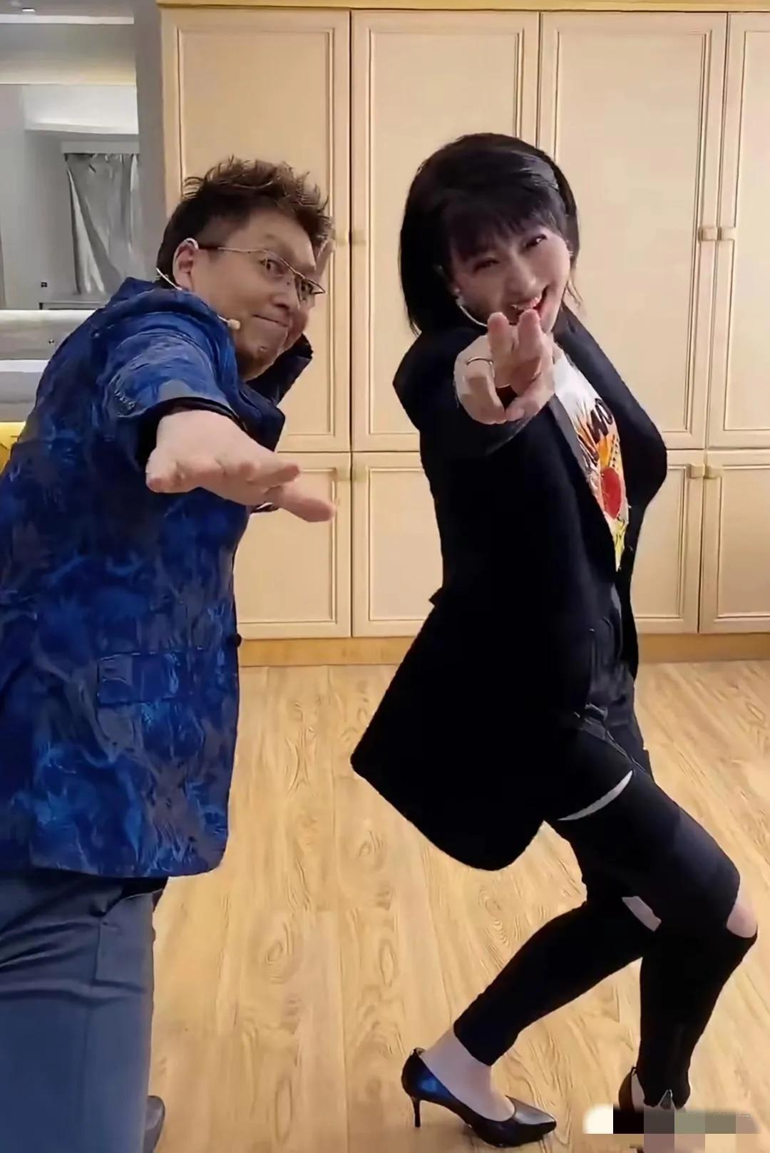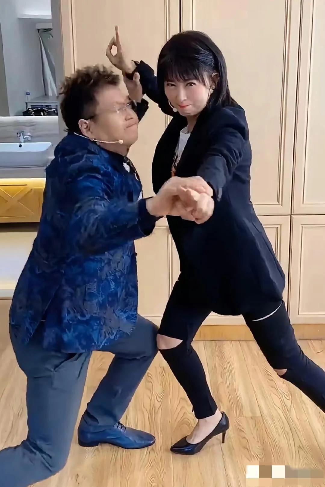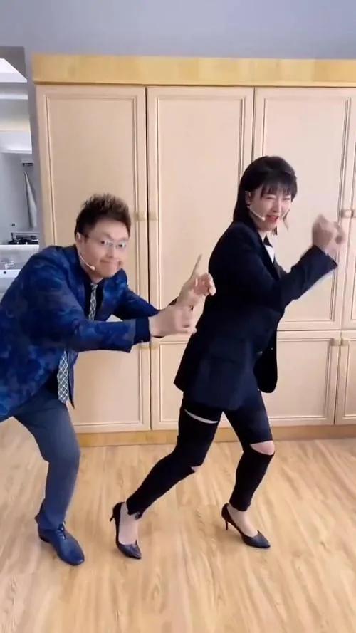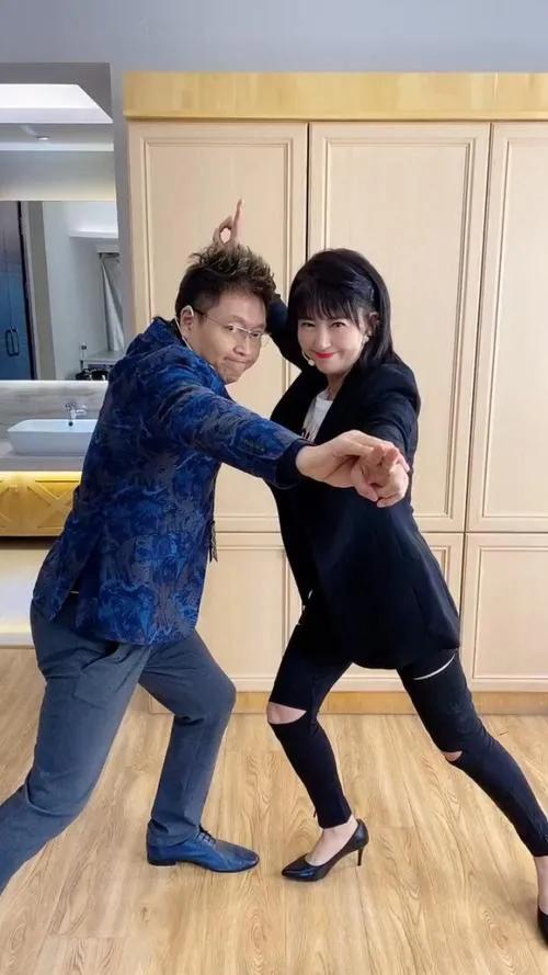 王为念与闫学晶跳舞:舞姿活泼潇洒,动作夸张惊艳,节奏感十足,没想到的是穿着露膝裤的闫学晶依旧朱唇粉面,身姿曼妙,秀韵多姿,颇显年轻哈,你看是吗?