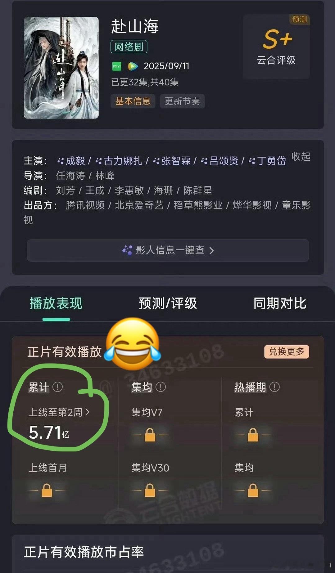 ·出道近20年,刚完结扑街的《赴山海》男主仅一部剧均集破3000(还是超长热播期90天磨的)!