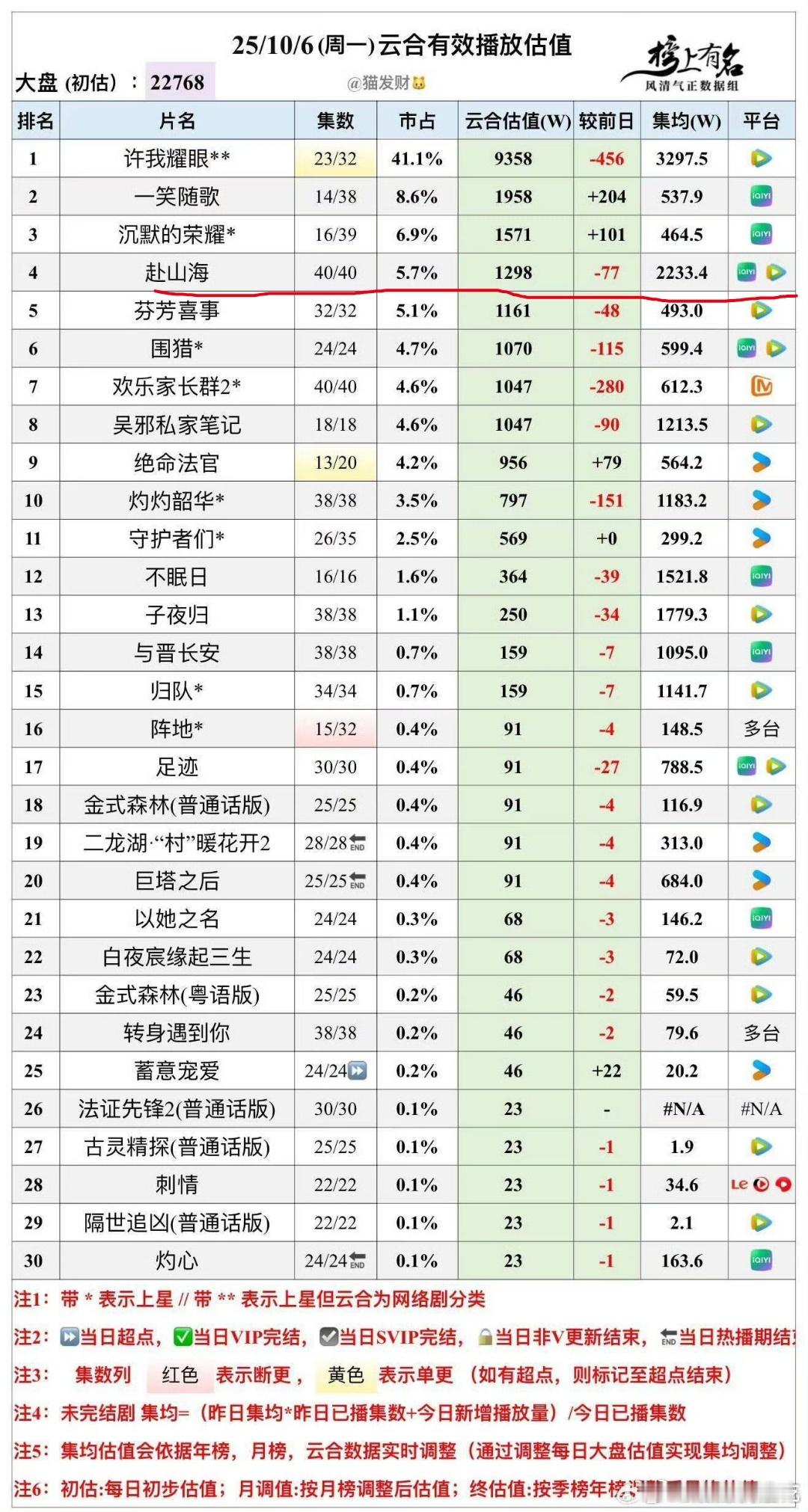 赴山海这部扑街剧vip才完结一周而已,不能因为播放量掉很快就觉得已经完结很久了吧,热播期都还没过呢,还在为2500w集均努力[无聊] 内娱流量生花观众缘排行