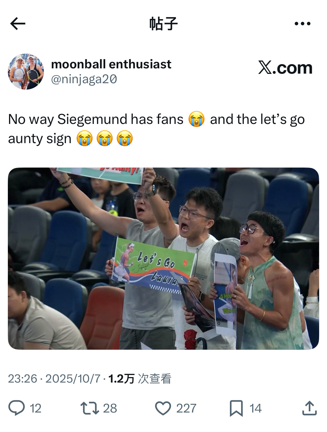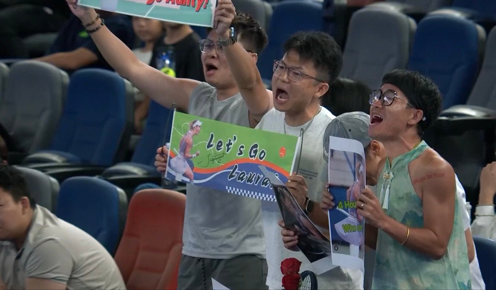 武网看台惊现西格蒙德球迷团,中国网球迷的博爱精神,又一次震惊到了推上同好网球的国际友人[笑cry][笑cry][笑cry]西格大姐昨天奋起神威打哭安德列娃的原因,难道就在这里吗[doge]