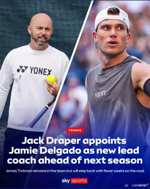 赛季报销的英国一哥德雷珀宣布将于穆雷和迪米的前教练德尔加多携手征战2026新赛季。