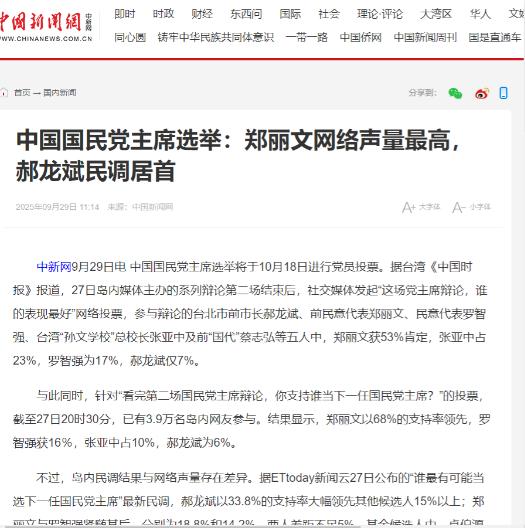 国民党主席选举结果出现!郑丽文民调以68%位居第一,郝龙斌则仅仅获得6%,处于垫底状态,毫不夸张的说,如若按照目前情况来看,那么郝龙斌想要脱颖而出,几乎是微乎其微! 这是因为郝龙斌的参选路数就走偏了,完全没摸准现在国民党党员的心思。这次选举一开始报了6个人,可很快就成了郝龙斌和郑丽文的对垒,其他人基本都是陪跑,可就算这样郝龙斌还是没抓住机会。 要知道,国民党主席选举早就改成全体党员直选了,党员投票最看重的是候选人能不能实实在在回应需求,而电视辩论正是直接跟党员沟通的最佳渠道——毕竟几千几万党员不可能个个都跟候选人见面,辩论场上的表现就是大家判断其能力的关键窗口。 可郝龙斌偏不,放着这个最直接的舞台不管,一门心思扎进了找大咖拜码头的迷局里。先是南下找韩国瑜,说两人是老交情,未来党务离不开对方支持,还把韩国瑜那句“心想事成”当成了明确支持的信号,转头又拉着卢秀燕搞“台中小吃之旅”,强调彼此是多年好友需要帮忙。 结果呢?卢秀燕后来明摆着站了郑丽文,韩国瑜那含糊其辞的表态根本没转化成实际票仓,所谓的“好友助力”从头到尾都是他自己的一厢情愿。 更讽刺的是,后来花莲救灾期间,他借着“救灾”的由头缺席后续辩论,转头就被爆料出现在宜兰的餐会上跟党代表吃饭拉票,这种“逃辩论搞聚餐”的操作,直接把自己的虚伪摆到了党员面前。 反观郑丽文,恰恰是抓住了辩论这个要害。前三场辩论她场场不落,对着郝龙斌的漏洞句句戳中要害。 郝龙斌在辩论里要么靠读稿作弊,要么被问起“九二共识”就支支吾吾,甚至抛出“等距友好”的模糊论调,被台办一句“根本不存在”怼得颜面尽失;郑丽文却清清楚楚表态要在“九二共识”基础上推动两岸交流,说“大陆对台湾人而言绝对是机遇”,这种务实立场一下就戳中了想让国民党回归根本的党员的心。 刚开始郝龙斌还靠着朱立伦的钦点和赵少康的站台领先民调,可三场辩论下来,他的支持率从最初的领先一路跌到17.4%,再到后来的6%,而郑丽文则从“非主流”一路逆袭,民调从30%飙升到68%,这差距说白了就是辩论场上见了真章。 郝龙斌一门心思拜会的党内团体,其实早就不是党员说了算的地方了。这些年国民党党员早就烦透了派系扯皮,郑丽文抓住这点喊出“砍掉一半派系会议,把钱给年轻党员”,还拿台南党部把20万派系联谊经费改投青年沙龙的例子做佐证,一下就说到了大家心坎里。 可郝龙斌还在挨个拜会那些老牌派系,甚至被爆出搞派系交易,这种守旧操作在求变的党员眼里简直是逆潮流而动。 更要命的是,他连自己承诺的事都做不到,之前说三个月内成立“企业与青年对接小组”,结果半年过去连影子都没有,对比郑丽文在夜市蹲下来听摊贩抱怨,还真把繁琐的卫生检查流程给简化了,谁更接地气一目了然。 党员最看重的“带领国民党重返执政”的能力,郝龙斌更是拿不出像样的答案。民调里明确显示,觉得郑丽文有这个能力的党员占28.3%,而郝龙斌只有12.6%,这数据差可不是偶然。 郑丽文不仅拿到了王金平的手写建言,洪秀柱的爱将黎子渝也公开挺她,连黄复兴党部的前主委和一众“退将”都达成共识要推她上位,这些关键力量的支持恰恰说明她的路线被认可。 可郝龙斌这边,除了一开始靠着朱立伦、赵少康的名头撑场面,到后来连这些“军师”都闭了嘴,所谓的“大佬支持”成了空架子。 更尴尬的是,他的两岸论述不仅没讨好党员,还把自己架在了不伦不类的位置,既得不到深蓝党员的认同,又没法吸引中间派,反观郑丽文那句“台湾要站在大陆巨人肩膀上”,精准踩中了务实党员的需求点。 说到底,现在的国民党党员早就不吃“派系人情”那套了,他们要的是能干事、立场清、接地气的带头人,郝龙斌偏要抱着几十年前的老套路不放,放着直接沟通的渠道不用,一门心思搞虚头巴脑的拜会和交易,民调从领先跌到垫底,6%的支持率其实就是党员用脚投的票。 郑丽文的68%不是突然冒出来的,而是每一次辩论的清晰表态、每一次基层的务实走访、每一个击中痛点的承诺堆出来的,这么看来,郝龙斌想脱颖而出,确实只能是痴心妄想了。