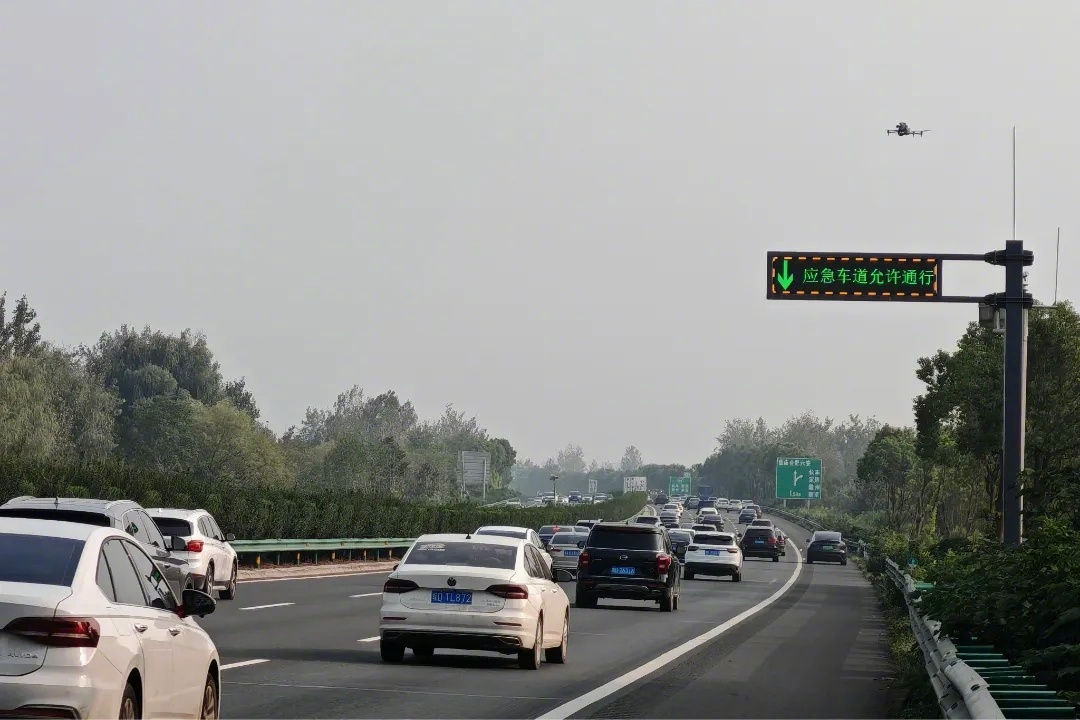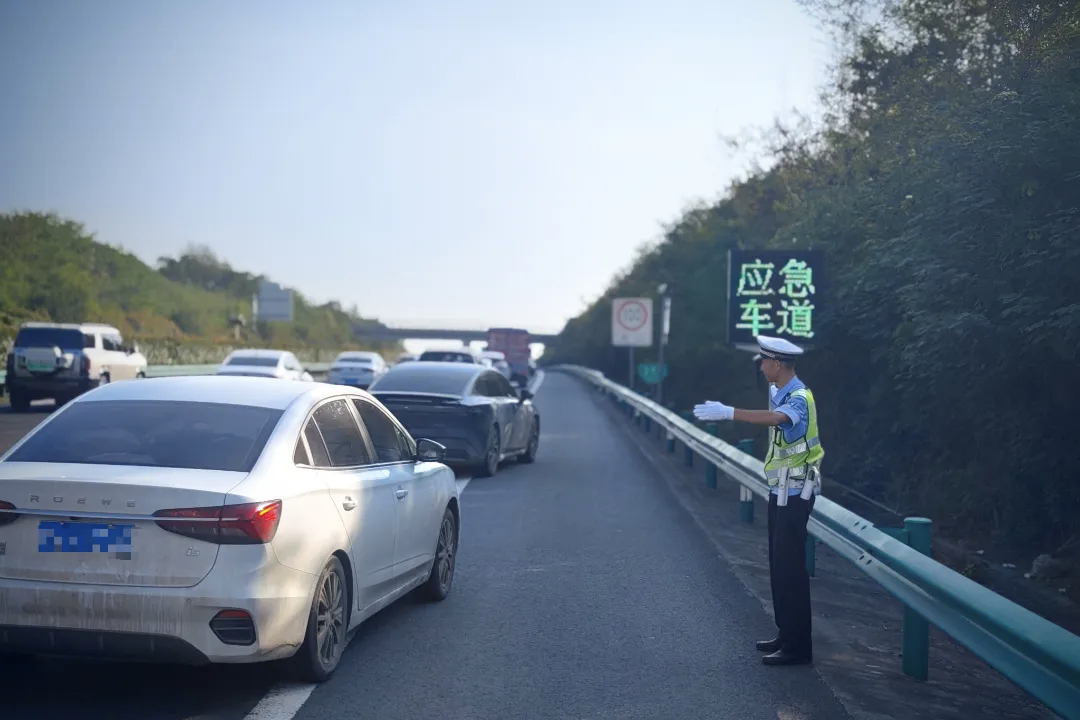 【返程高峰!#安徽高速部分应急车道可临时占用#】10月8日#国庆中秋假期最后一天#,安徽高速迎来返程高峰。记者从获悉,为全力应对车流高峰,有效缓解高速大流量路段通行压力,安徽多地高速交警根据辖区高速通行情况,在保障应急车道功能的前提下,在部分路段设置醒目提示,允许驾驶人临时借用应急车道行驶,并利用警用无人机开展“空中巡航”,及时疏导路面拥堵,高效实现快撤快处,精准取证交通违法,最大化提升高速公路通行效率。