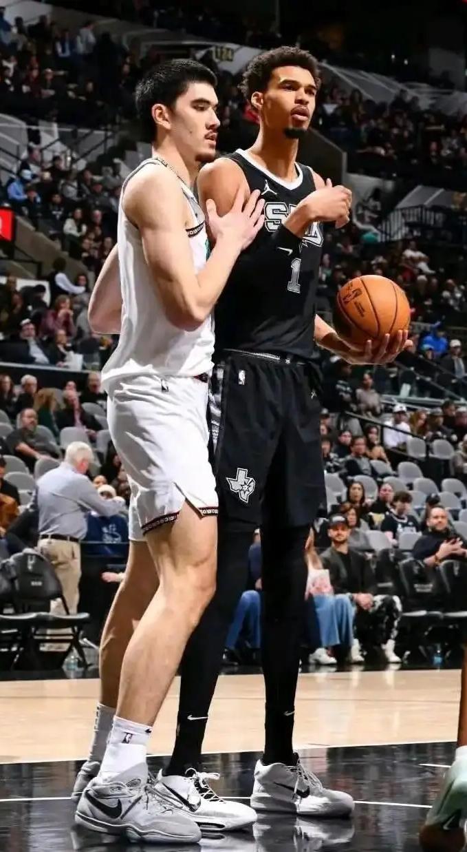 还在长!文班亚马身高更新为2米26。 原先为2米21,从图2也能看出确实又长了,文班比没站直的扎克伊迪(2米26)还高点。 文班才21岁,不会后面还会长吧?跟姚明同身高,弹跳、速度、灵活性、运球能力、投射均胜一筹,天赋真的是拉满了!