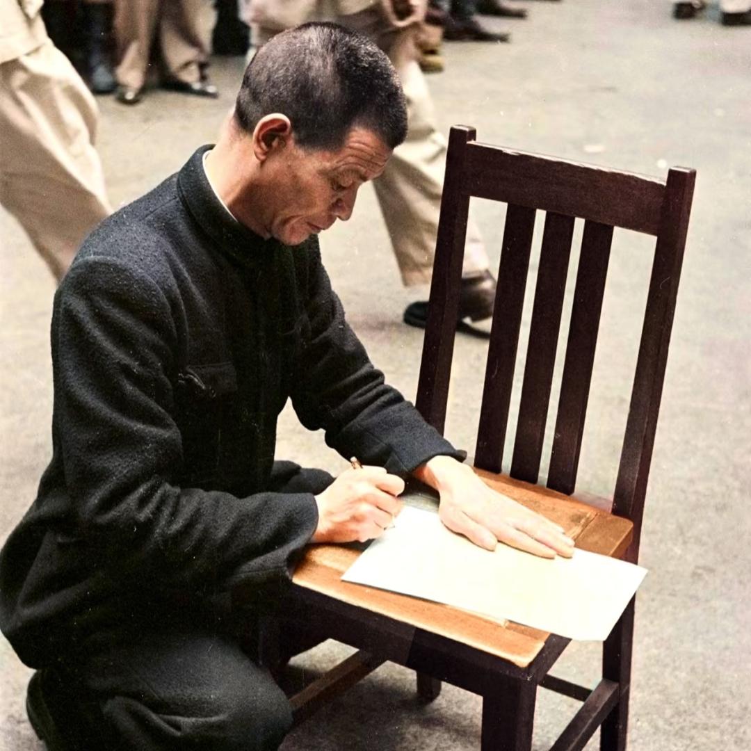 这个正在写遗书的男子,是陈惕庐烈士,镜头中的他蹲在地上,手里拿着钢笔,正在一张白纸上给家人写下最后的文字,他神情自若,写完后缓缓起身,走向刑场,历史会记住这一天1949年5月11日。 陈惕庐烈士,这人一辈子的经历,说起来又传奇又透着股复杂劲儿,不是三两句能讲明白的。按公开能查到的资料说,他老家是江苏淮安人,1898年儿出生,不过好多人不知道,他早年其实叫陈治平,后来才改的名。 打小这陈惕庐就特别聪明,念书成绩一直拔尖儿,在学堂里那都是老师常夸的好学生,这点跟咱身边那些爱学习的孩子比,真是一点儿不落下风。 到了1924年,陈惕庐加入了国民党,那会儿他心里估计也满是想为国做事的劲儿;可谁能想到,才过了两年,也就是1926年,他又以国民党党员的身份加入了共产党——要知道那时候两党关系虽说有合作,但这样的身份转换也挺少见的,足见他那会儿对革命方向有自己的判断。之后好些年,他都一直跟着组织干革命活动。 后来到了白色恐怖最厉害的时候,到处都是抓革命者的特务,陈惕庐因为出了叛徒把他给出卖了,一下子就跟党组织断了联系,那段日子他肯定特别难,没了组织的依靠,还得躲着敌人的搜捕。也正是因为这层关系,陈惕庐实际上已经脱离了党组织。 这事儿要是放别人身上,说不定就彻底消沉了。更让人议论的是,他后来又重新回到了国民党内部,好些人一听说这事儿,可能第一反应就是“这不就是叛变了吗?”说实话,单从表面看,这么理解好像也没毛病,毕竟身份来回转,确实容易让人起疑心。 时间一晃到了1948年,那会儿国民党在大陆的统治早就不稳了,跟快要倒的墙似的,摇摇欲坠。这时候有个叫“孙盟”的组织冒了出来,主要就是偷偷联络我党,还想办法策动国民党的部队起义,给解放军帮忙。 陈惕庐知道这事儿后,没怎么犹豫就加入了“孙盟”,我猜他心里始终还是向着革命的,就想趁着这个机会再为国家做点儿实事。之后为了配合解放军过长江,他跑了好多地方,联系这边的人、传递那边的消息,做了不少实实在在的努力,那些活儿都藏着风险,稍不注意就可能暴露。 可惜啊,他还是被国民党的特务给盯上了,最后没能躲过,让人给抓了起来。哪怕被抓了,他也没松口,没把组织的事儿往外说,最后在上海闸北公园那儿光荣牺牲了。 陈惕庐还有个儿子,后来也挺有志气,长大了就参军入伍,跟着部队保家卫国,可让人难过的是,1950年12月的时候,这孩子在朝鲜战场上牺牲了,父子俩都为国家献出了生命,这份勇气真不是一般人能有的。 到了50年代初,有关部门经过调查核实,确认了陈惕庐的革命贡献,给他颁发了烈属证。这证虽小,却是对他一辈子的认可,也算是给了他和家人一个交代。
