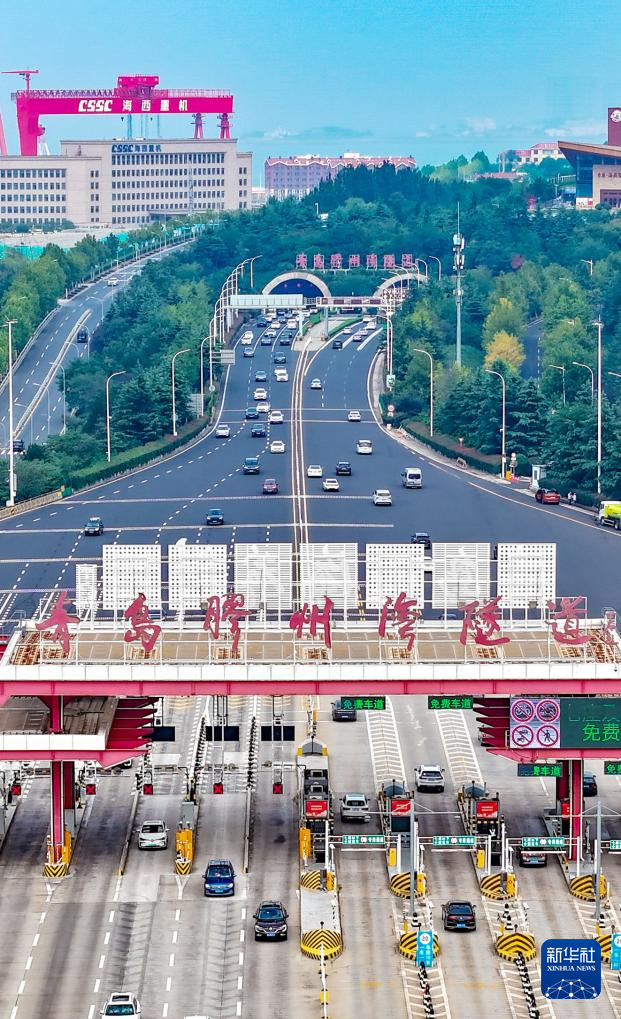 图7:山东青岛胶州湾隧道车流(无人机照片)。