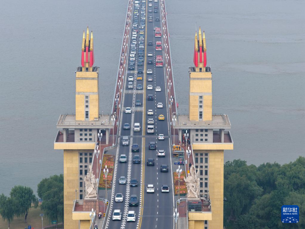 图4:江苏常泰长江大桥车流(无人机照片)。