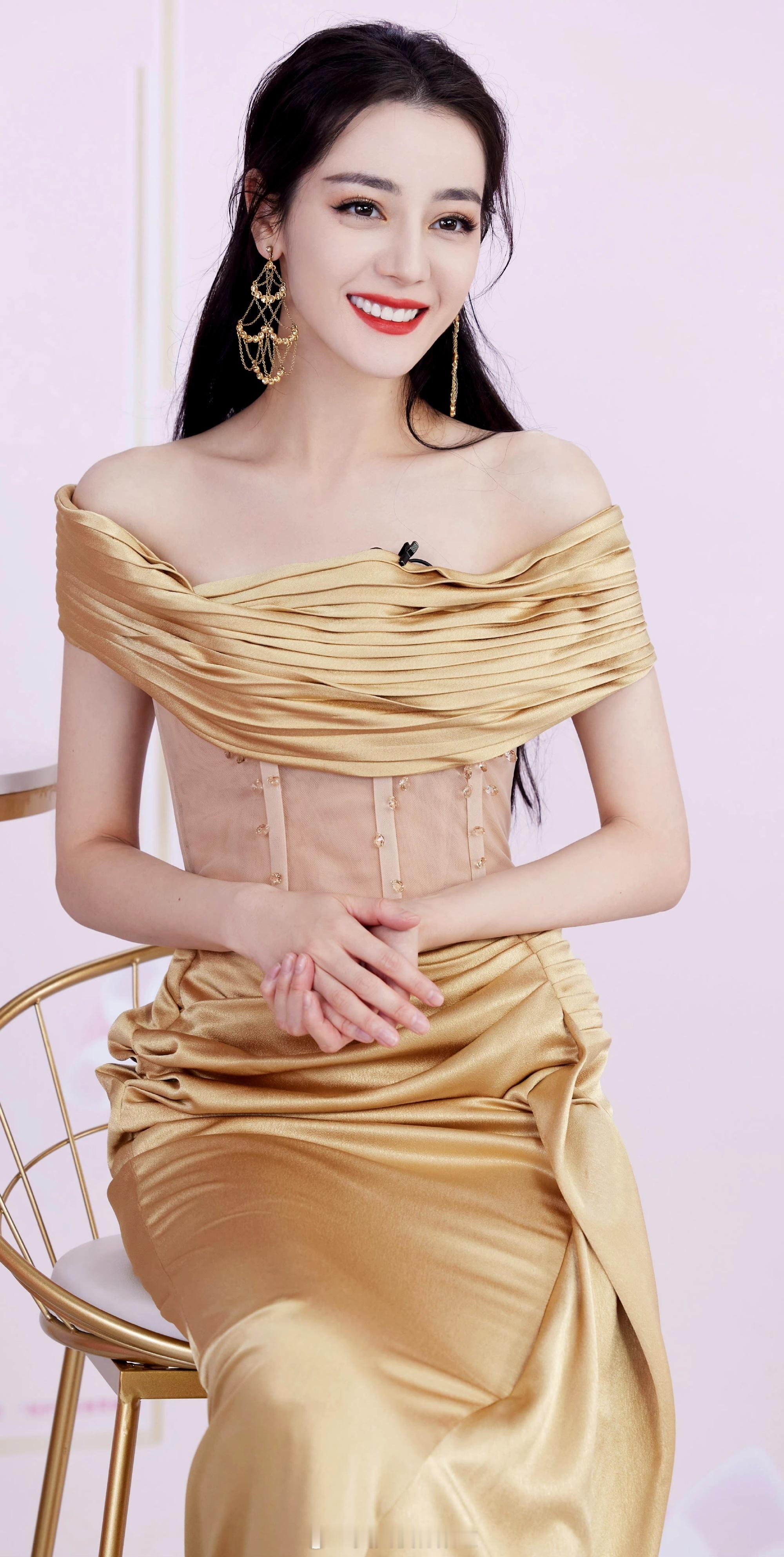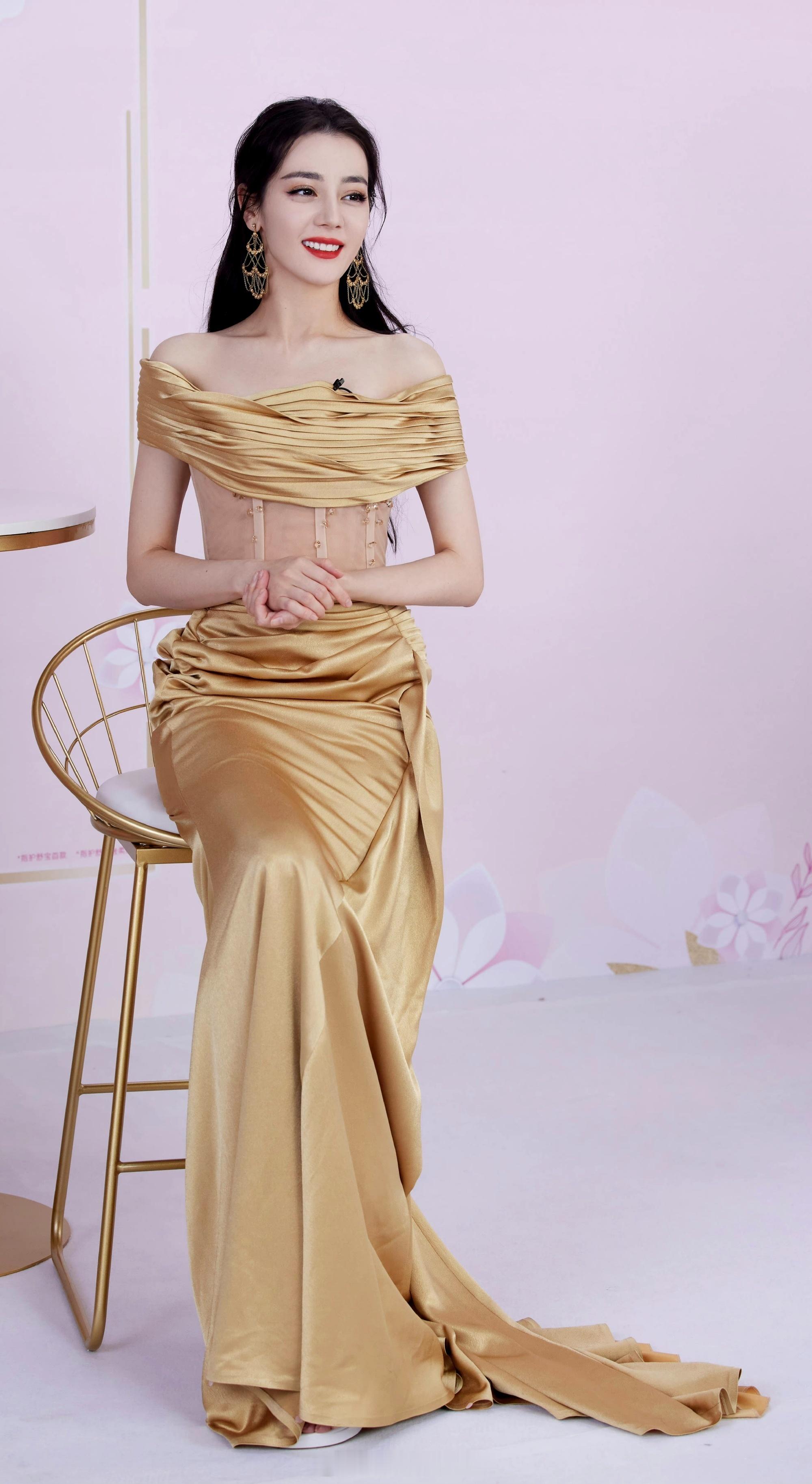 迪丽热巴金色礼服热烈大片