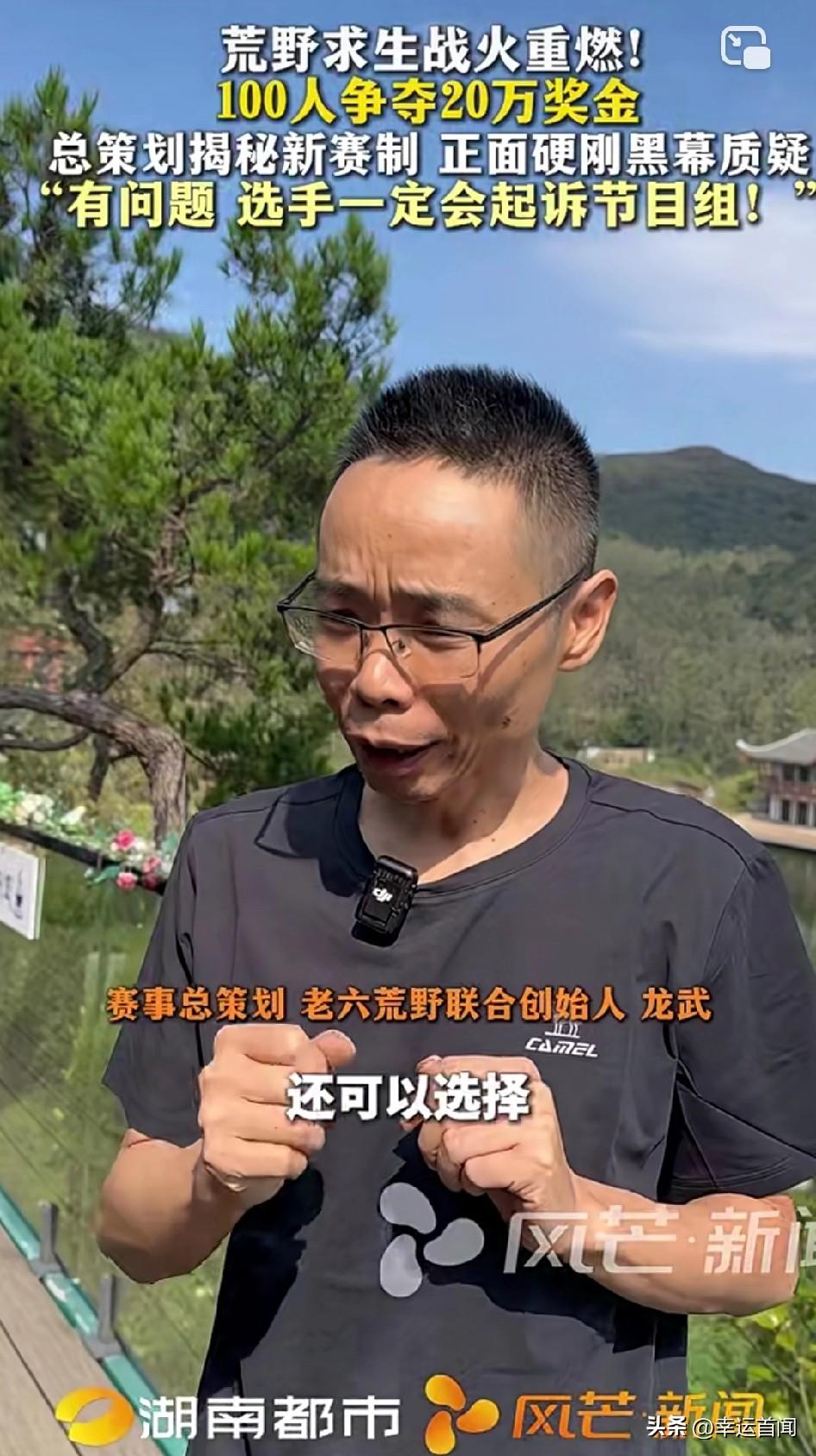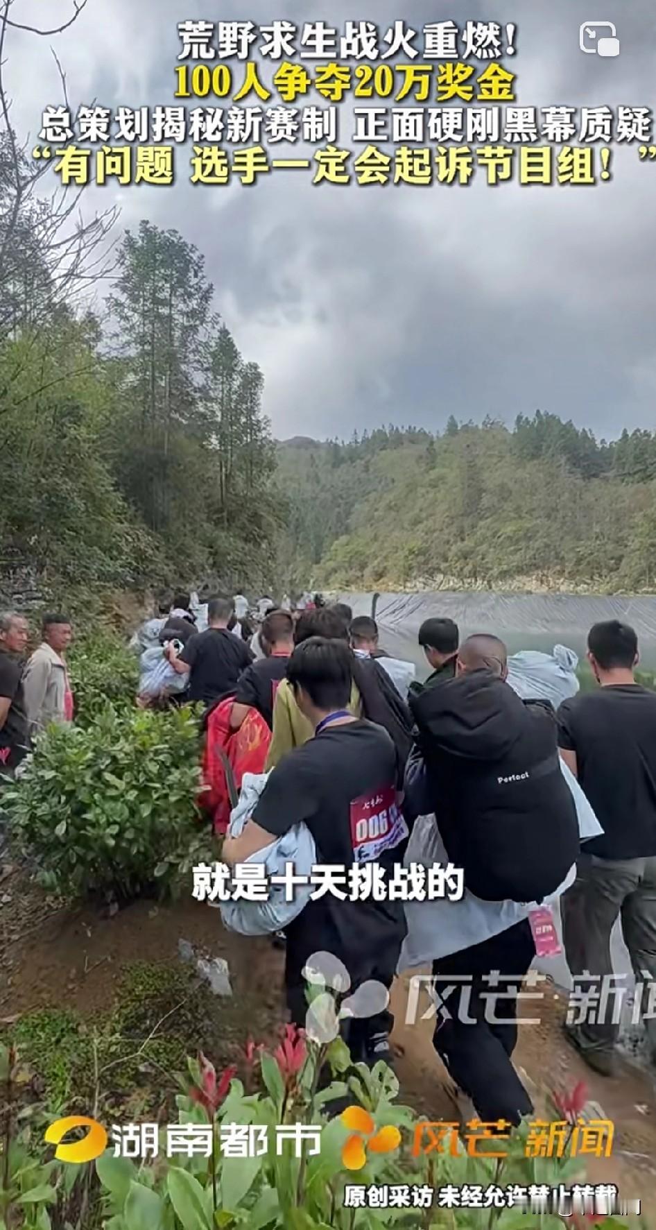 看谁能熬,看对手能不能熬,20万不好拿,光一个生火就有可能搞退90% 龙武:“我们这次奖金是冠军20万,每隔10天会有一个奖项,就是10天挑战的这个第十天有2000块钱,选手可以选择拿走2000块钱拿走,还可以选择2000块钱先放在这里,我继续挑战20天的奖项成功了,我拿走6000没有成功,那前面两天也没了。我们已经举办过四期大赛了,每一期大赛都有人说黑幕,因为自己的喜欢的选手,他没有获得冠军,如果有黑幕,选手是第一个能感受到的,选手一定会起诉节目组。” 荒野求生战火重燃! 100人争夺20万奖金 总策划揭秘新赛制 我感觉还好,就是上次你们原因导致不能继续比赛,结果问选手同意不同意,他能说不同意吗[捂脸]最后平分冠军奖金更是看不懂,你的原因让别人平分[笑哭]